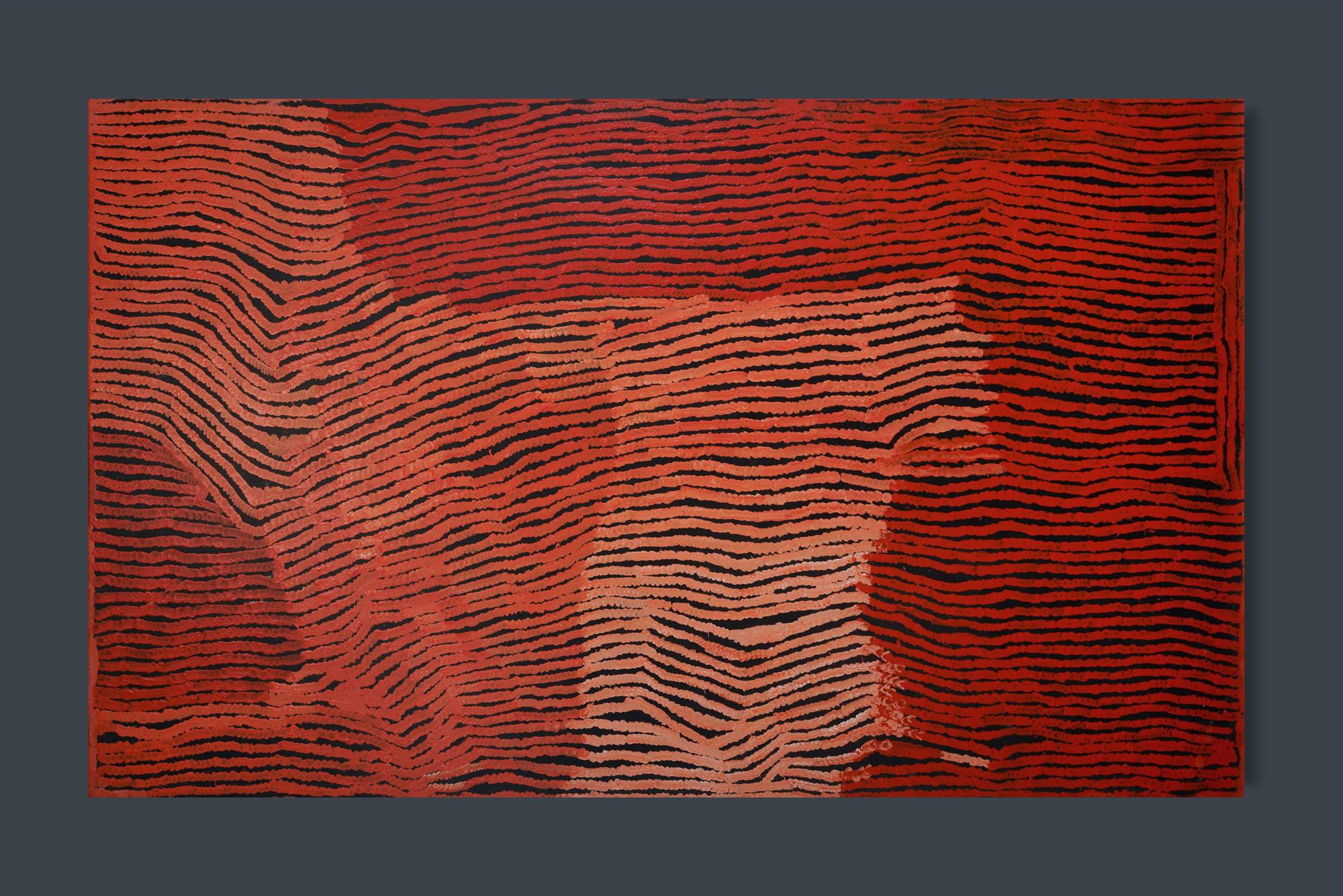 NAPANGARDI, Nanyuma (Aboriginal b.1944) 'Sandhills,' 2003. Acrylic on Linen 200x122cm PROVENANCE: Red Sand Gallery, Alice Springs (cat #nan5); private collection, NT; private collection, NSW. EXHIBITIONS: Maunsell Wickes 'Mixed Utopia,' 2006; Jeffrey Moose Gallery, Seattle USA 'Big Country, Australian Aboriginal Art Coast to Coast, 2012'.Estimate $1,000-2,000