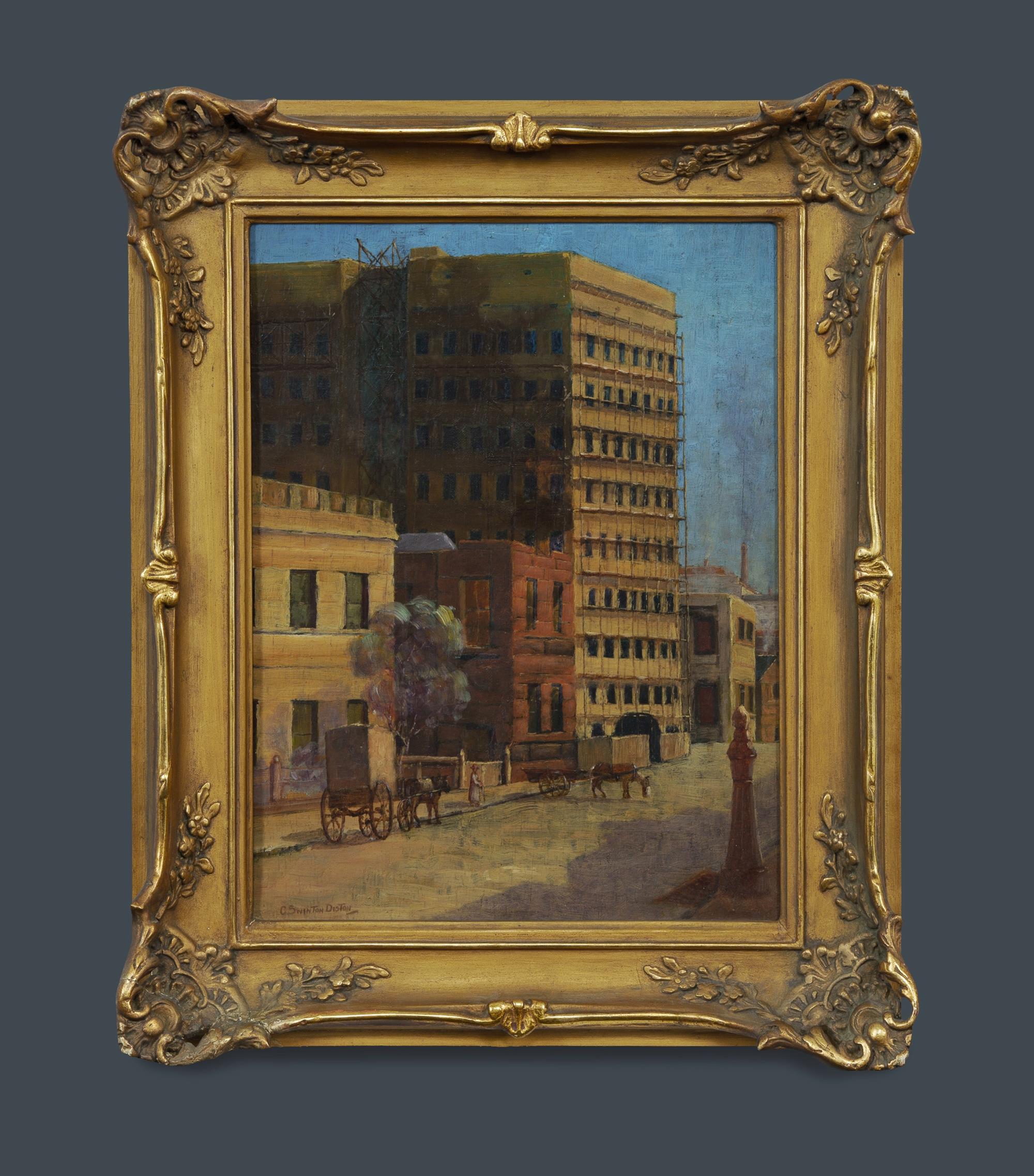 DISTON, Claude Swinton (1859-1940) 'View of Early Melbourne' Signed lower left. Oil on Plywood 33x24.5cm PROVENANCE: The Fred and Elinor Wrobel Collection, Sydney; Estate Late Elinor Wrobel.Estimate $300-600