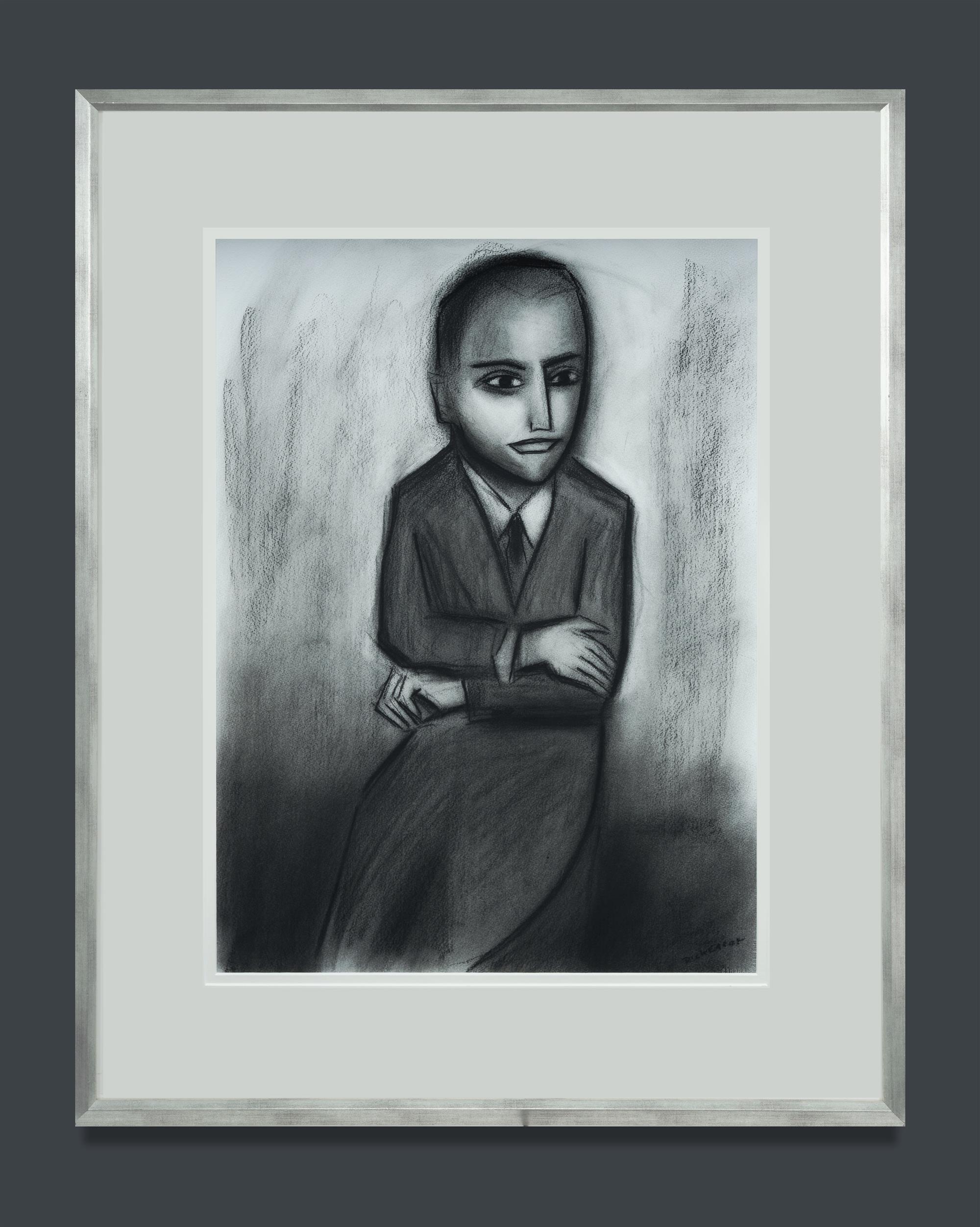 DICKERSON, Robert (1924-2015) 'The Commuter' Signed lower right. Ex Philip Bacon Galleries, Brisbane (label verso) Charcoal 75x55cmEstimate $3,000-4,500