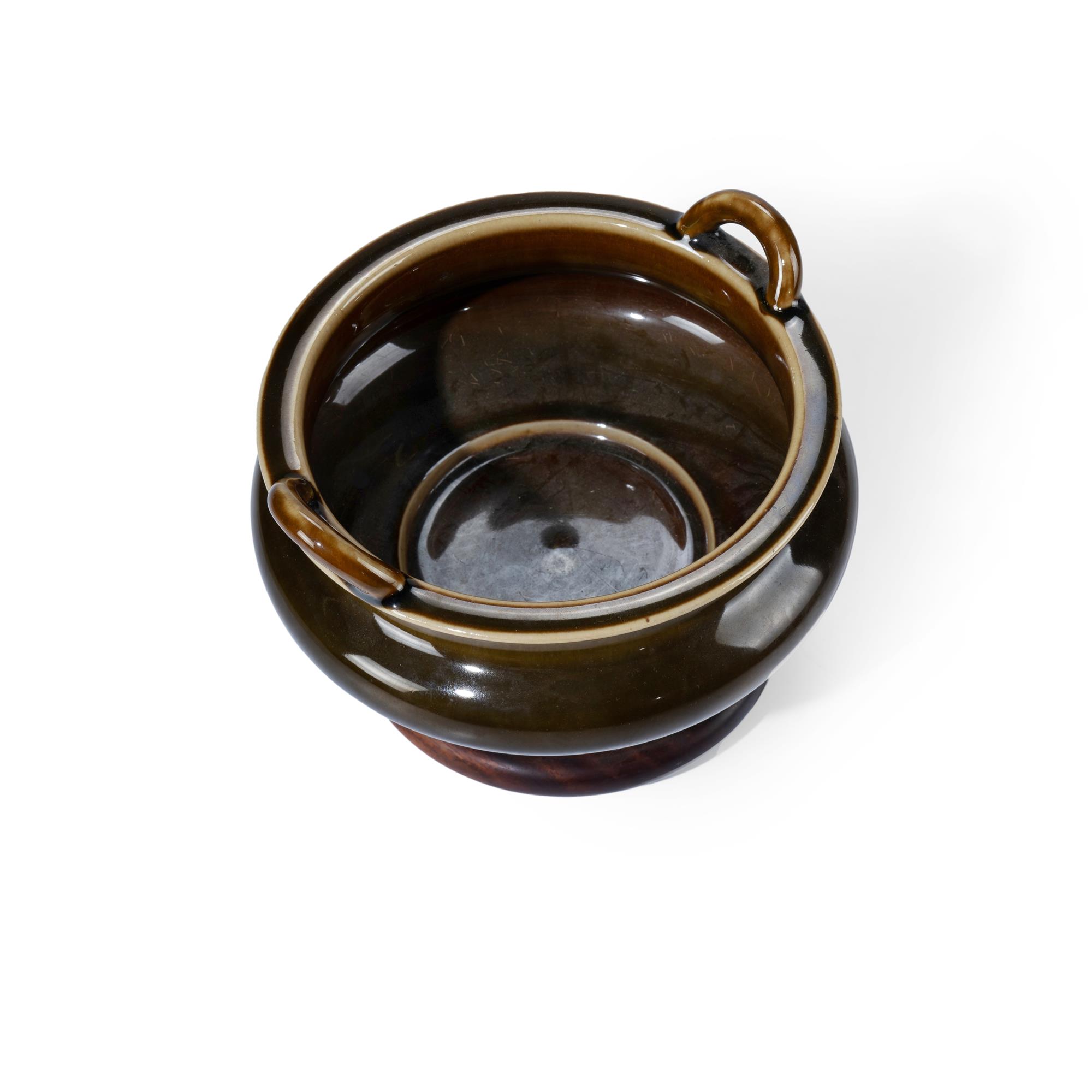 Chinese Olive Glazed Handled Censer Late Qing or Republic period. Incised apocryphal Chenghua four character mark. (W21cm)Estimate $100-300