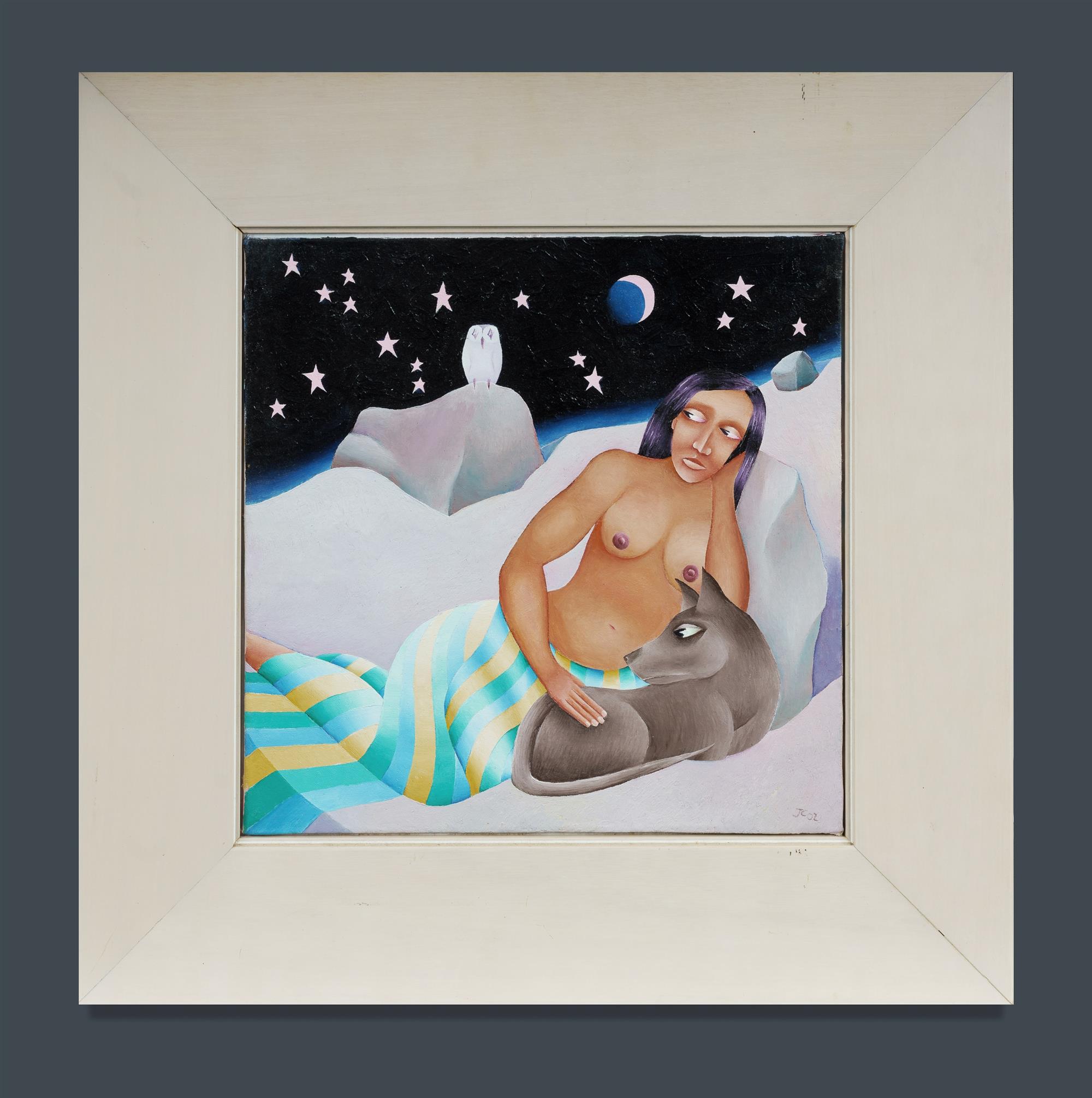CAMPBELL, Jonathan (b.1962) The Owl that Calls Upon the Night,' 2002. Initialled and dated lower right. Blake Prize entry 2002 (label verso) Acrylic on Board 25x25cm PROVENANCE: Private collection, Sydney.Estimate $200-400