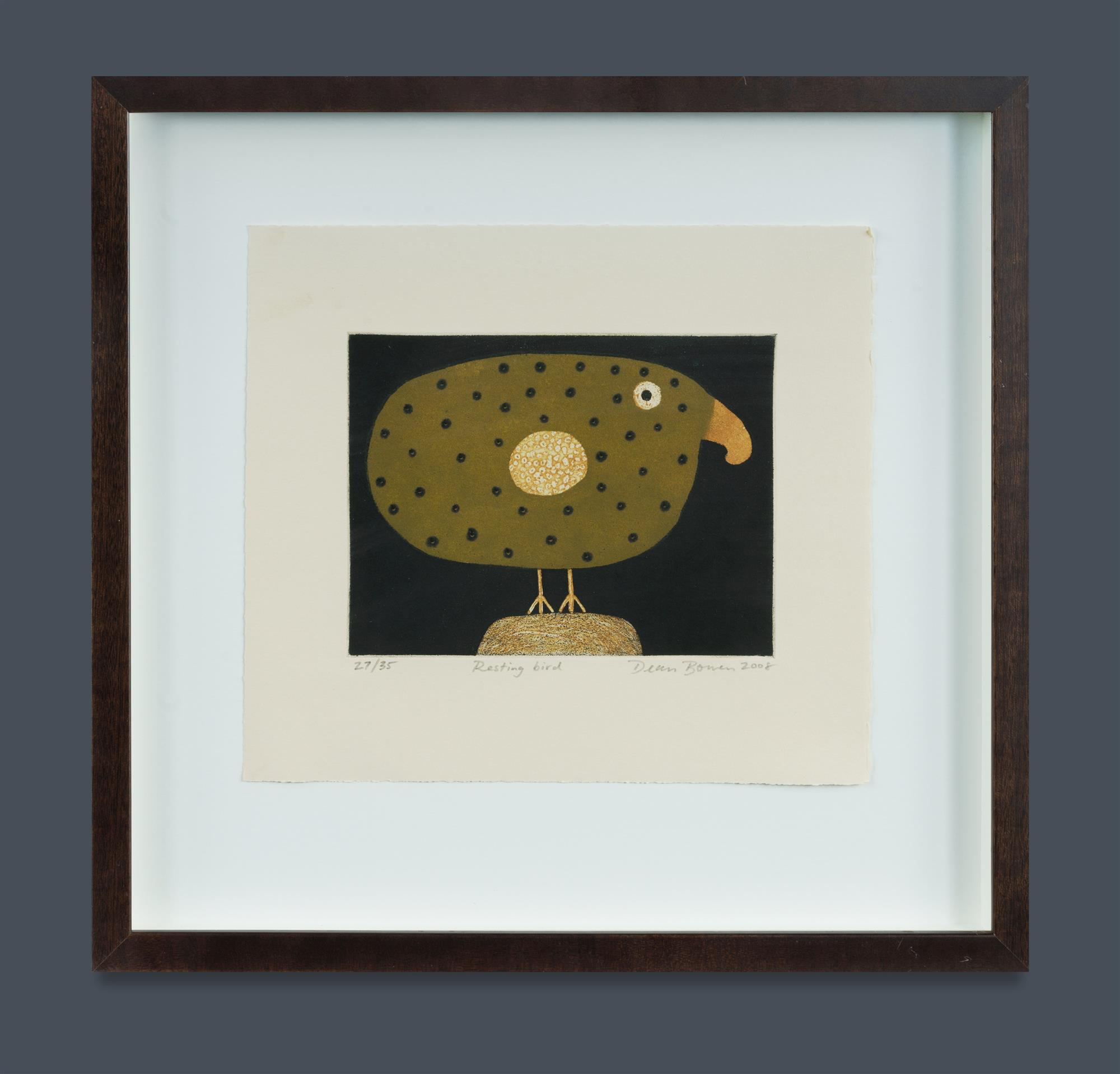 BOWEN, Dean (b.1957) 'Resting Bird,' 2008. Ex Tim Olsen Gallery, Sydney (label verso) Aquatint & Drypoint Etching 27/35 14.5x19.5cm (plate) PROVENANCE: Private collection, Sydney.Estimate $300-500