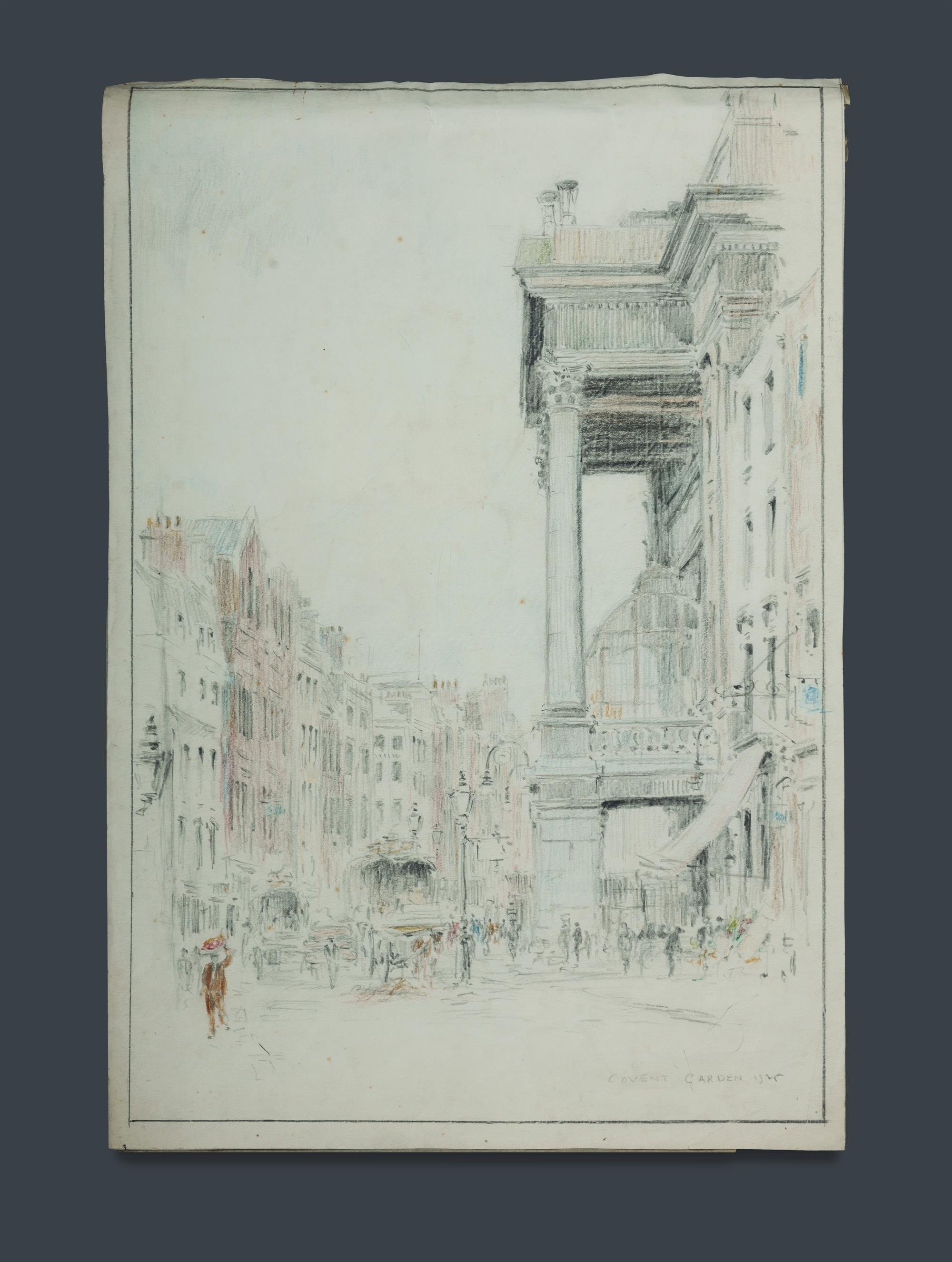 SILAS, Ellis (British/Australian 1883-1972) 'Covent Garden,' 1925. Unsigned Pencil & Crayon 48x32.5cm (sheet) PROVENANCE: Family of the Artist.Estimate $150-250