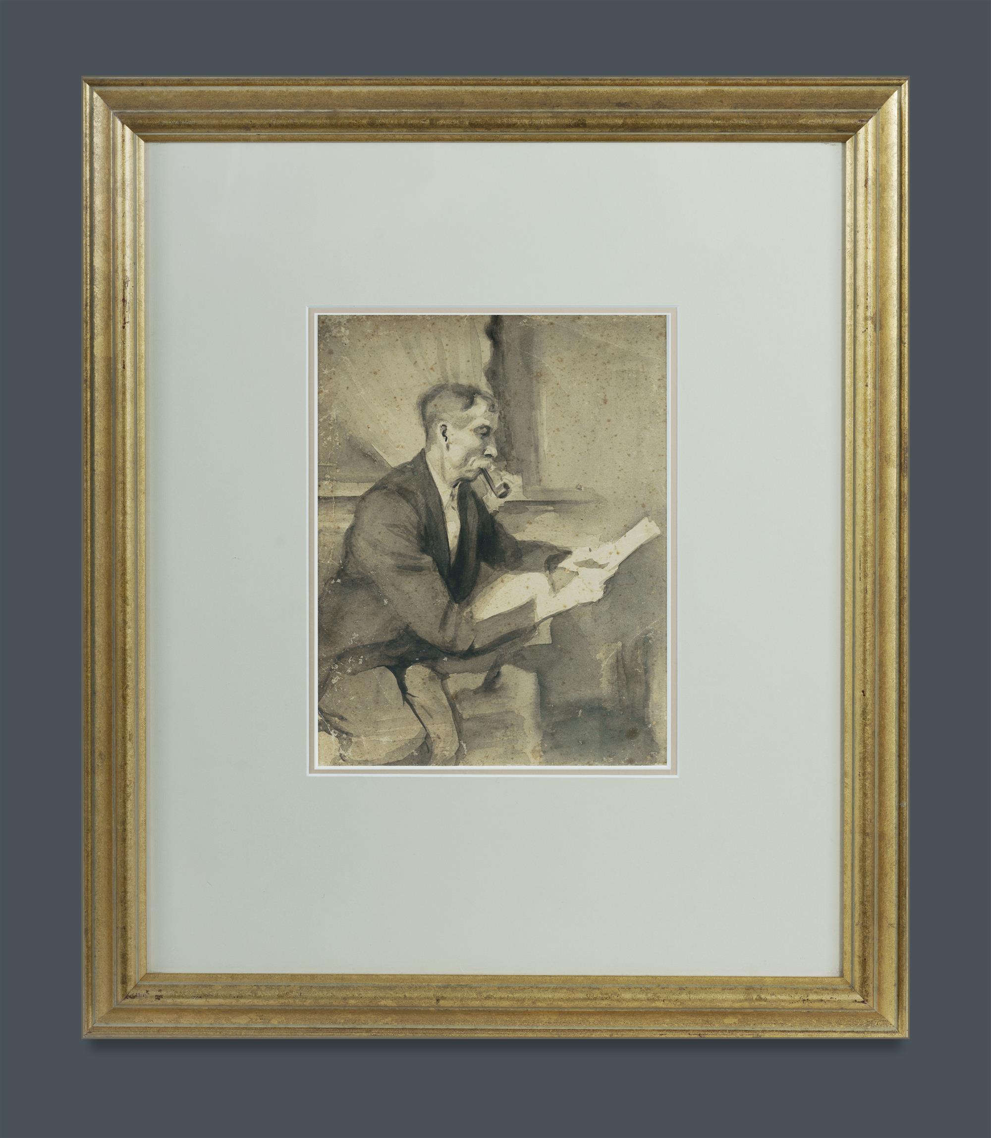 SMITH, Joshua (1905-1995) James Smith Reading (the artist's father), c.1940. No signature apparent, but with certificate of authenticity, signed by Yve Close, verso. W/Clr 24.5x19cm