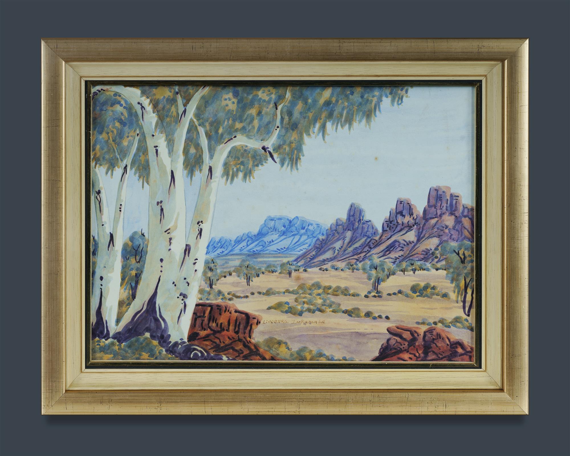 INKAMALA, Lindberg (1942-1980) Ghost Gums and Mountain Range Ex Battarbee Tmara-Mara Galleries, Alice Springs (noted on verso) W/Clr 26x36cmEstimate $180-300
