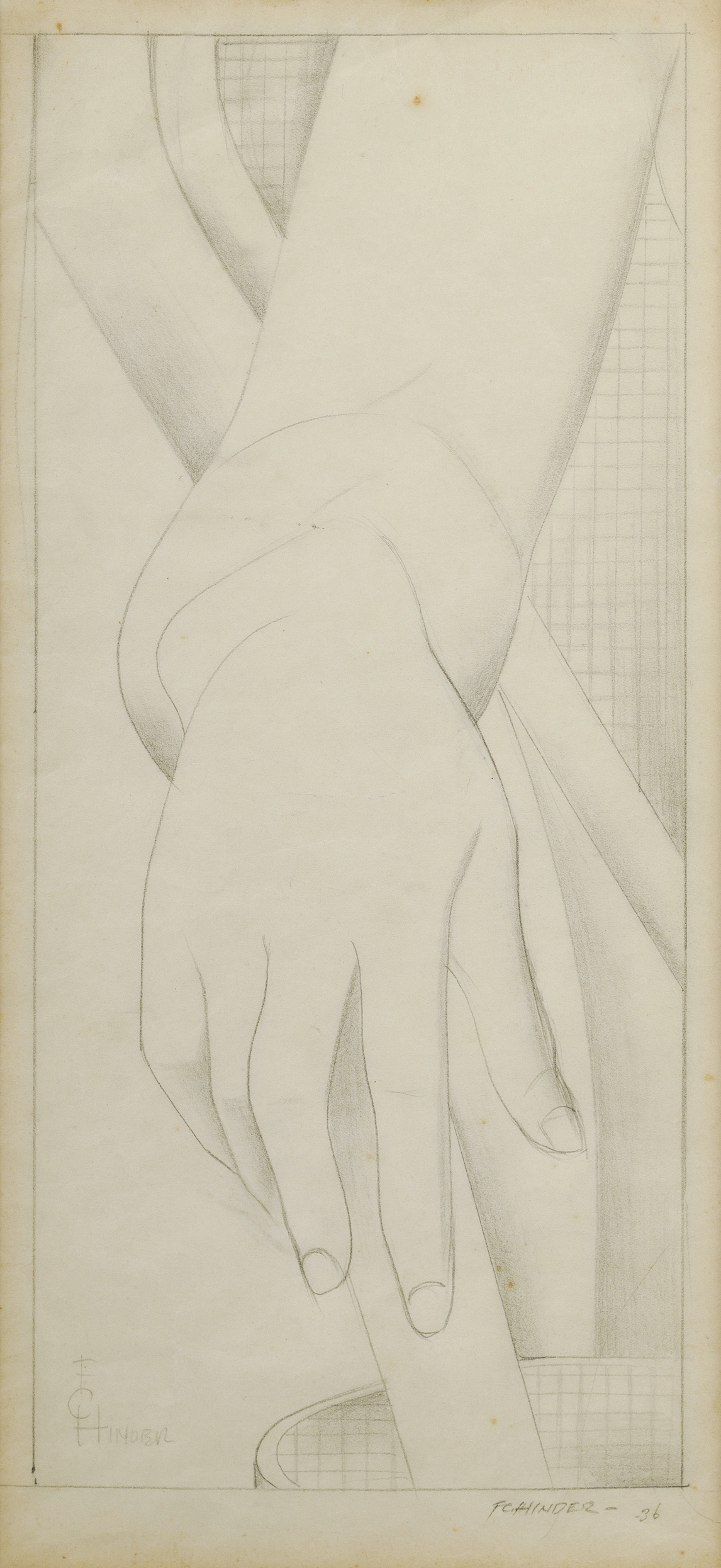 HINDER, F C (Frank) (1906-1992) (2) Hand Study, 1936, signed; and Preparatory Drawing for Hand Study. Pencil (2) 36x16cm (each)Estimate $600-1,000