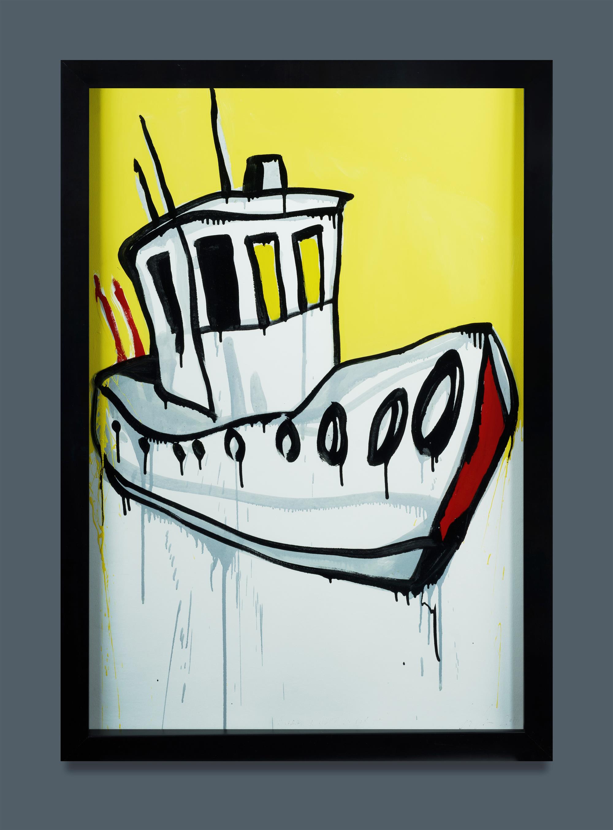 KNIGHT, Jasper (b.1978) 'Leave a Light on For Me,' 2011. Signed (faintly) lower right. Enamel & Acrylic 118.5x78.5cmEstimate $1,400-2,000