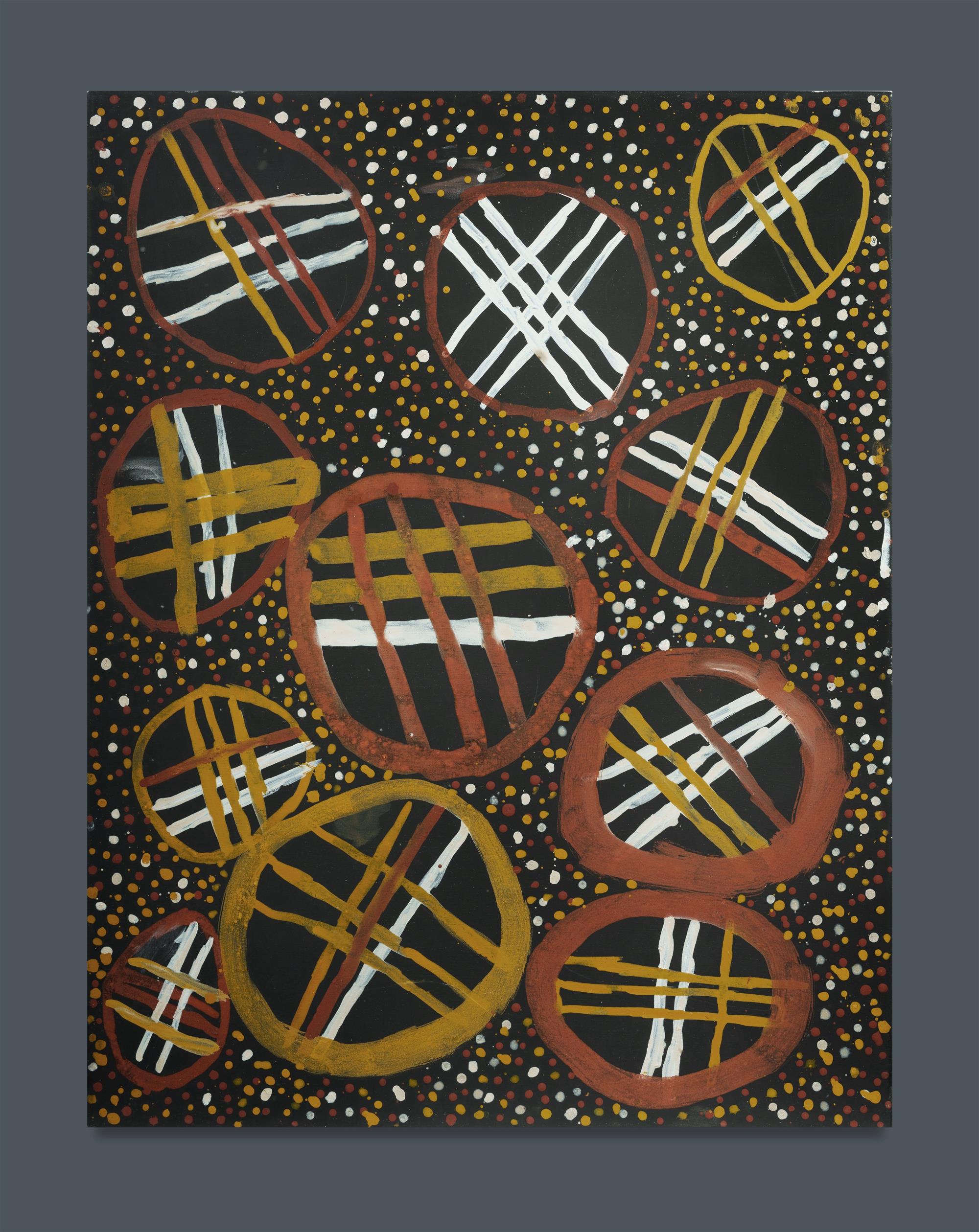 COOK, Timothy (Aboriginal b.1958) Untitled, 2004. Stamp verso (likely Jilamara Art & Crafts), cat #313-04. Natural Earth Pigments on Canvas 91x70cmEstimate $600-1,000