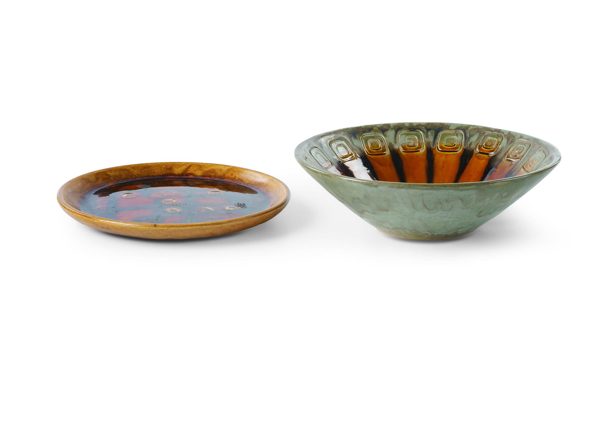 Ellis Ceramic Bowl and Platter Both incised 'Ellis' to base. Dia.28cm (bowl) Dia.24.5cm (plate)Estimate $100-200