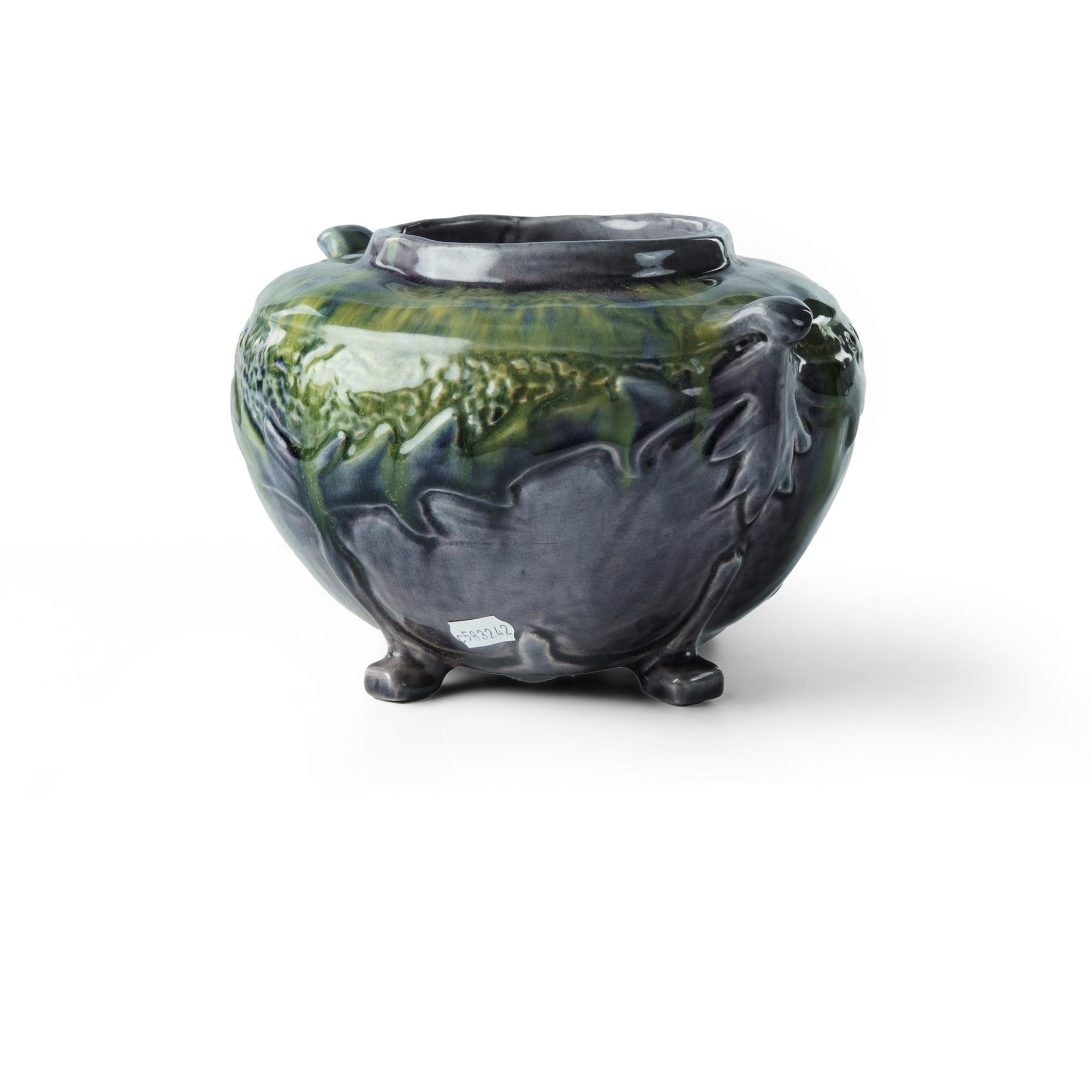 O'REILLY, Maud (1886-1971) Harvey School Vase with Purple and Green Glaze Raised on 4 feet. Incised monogram 'CMOR' and dated 1923. (H12cm)Estimate $300-600