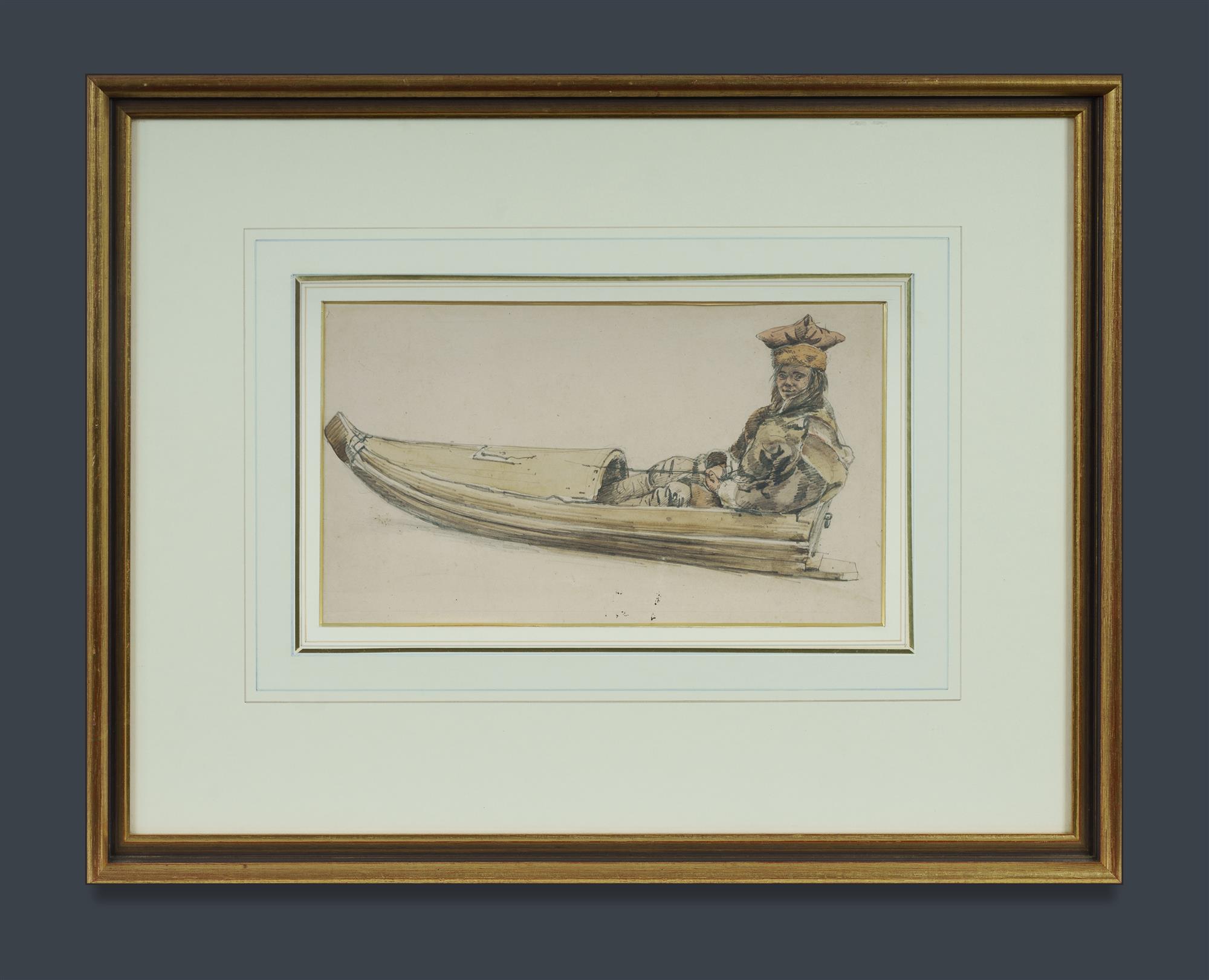 Attrib. STRUTT, William Thomas (1825-1915) Sami Lady in Four Winds Hat on Sledge Unsigned Attribution verso in later hand. W/Clr on Paper on Board 16.5x28.5cmEstimate $200-400