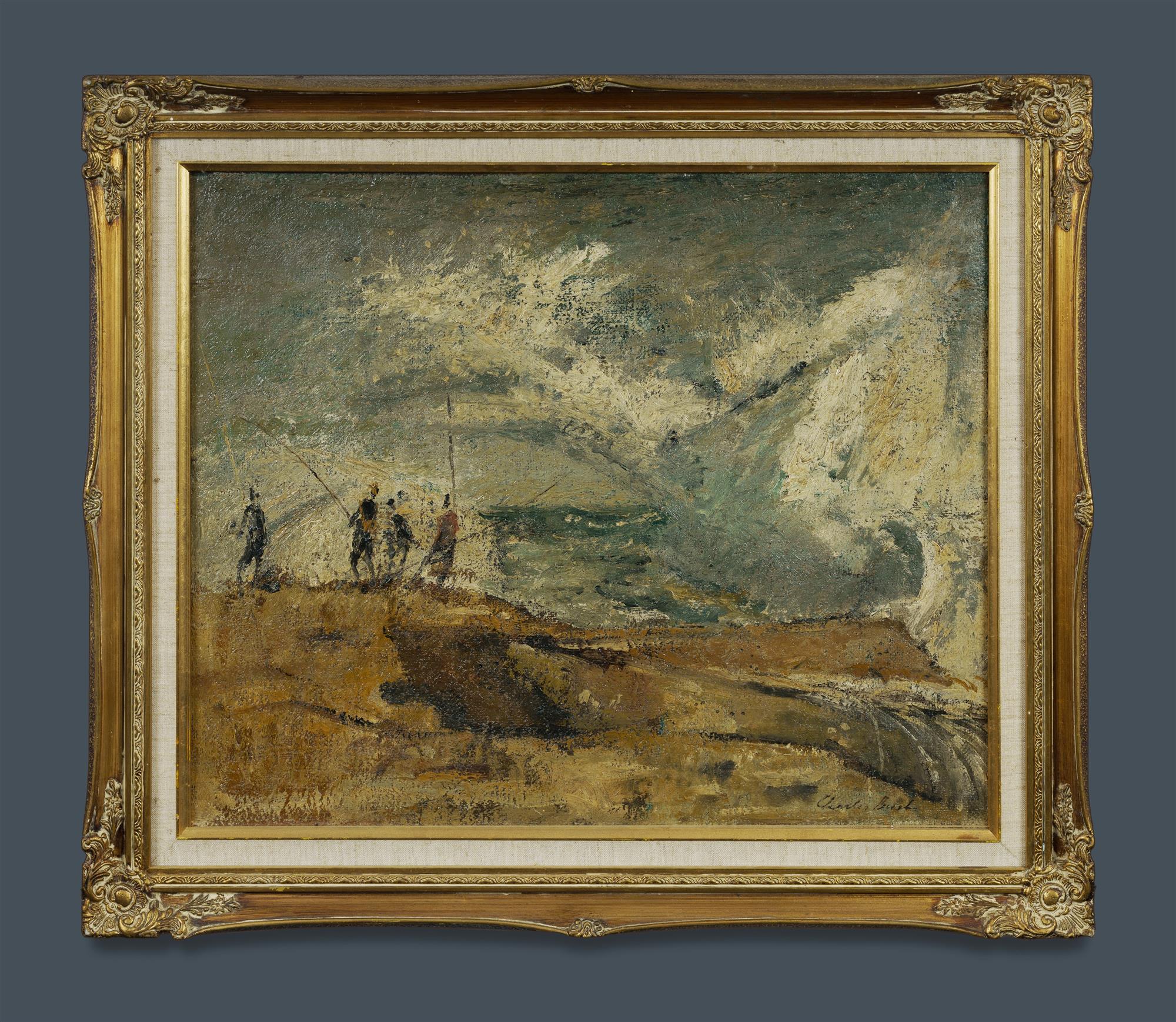 BUSH, Charles William (1919-1989) 'Rock Fishermen' Signed lower right. Oil on Canvas on Board 49.5x60cm PROVENANCE: Lawsons, Sydney, 21st November 2000 (lot 619)Estimate $300-500