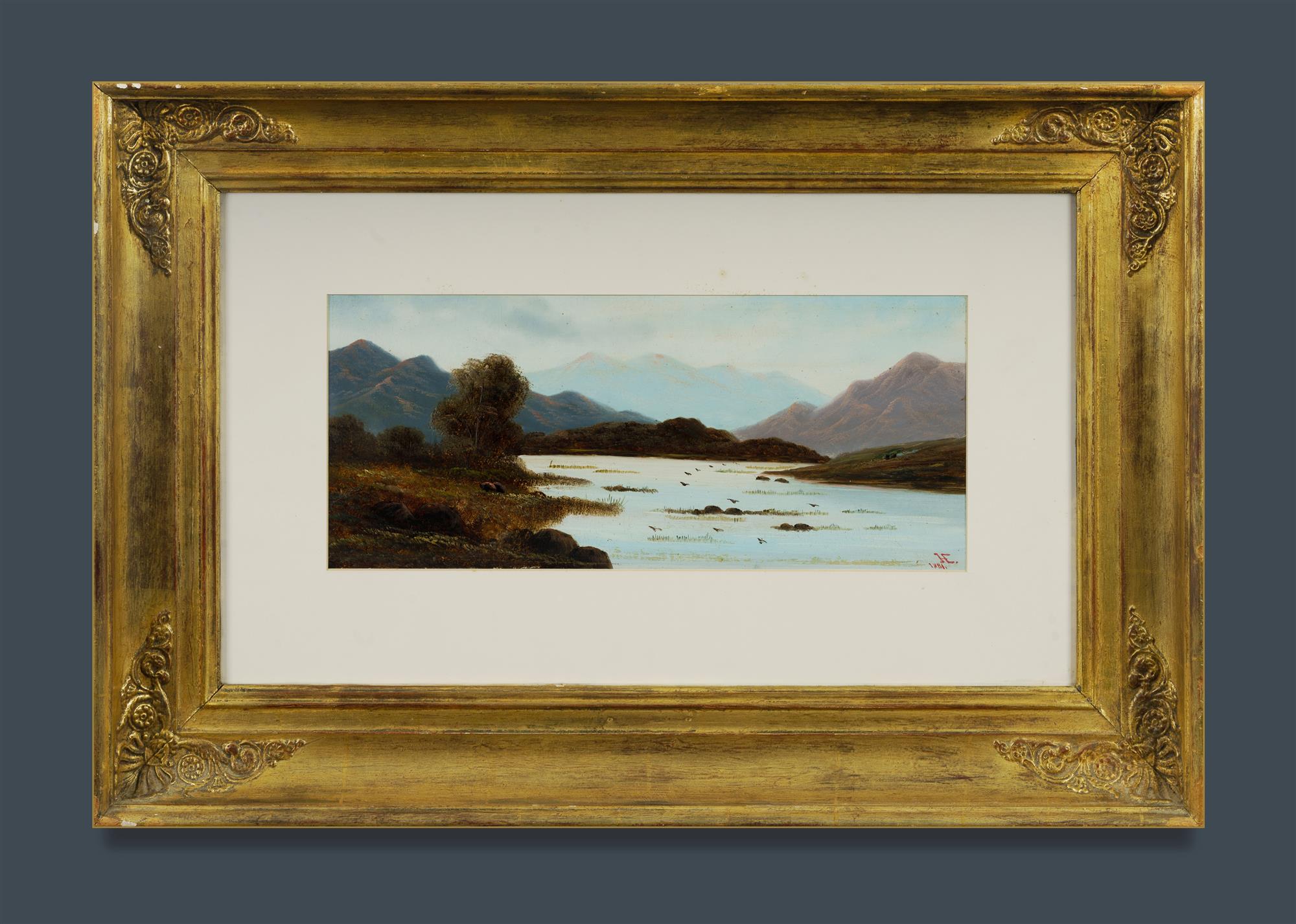 Attrib. CARSE, James Howe (1819-1900) Lake in Mountain Landscape, 1881. Monogram (JHC) lower right. Oil on Academy Board 18.5x43cmEstimate $200-400