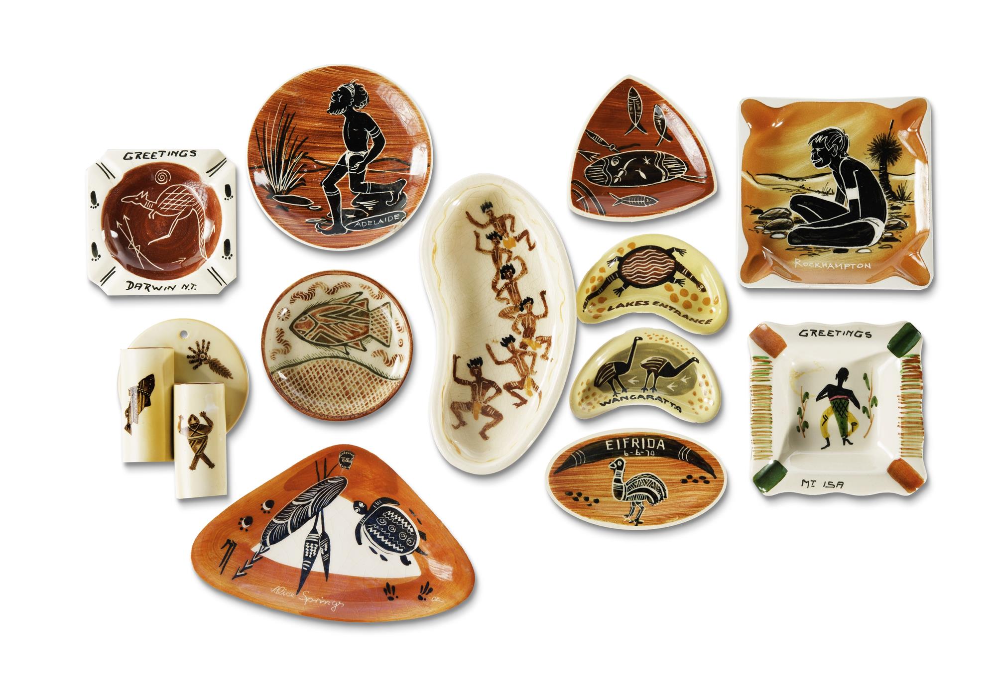 16 Various Australian Souvenir Pottery Items Various makers, with Aboriginal themes. (H10cm) Estimate $50-100