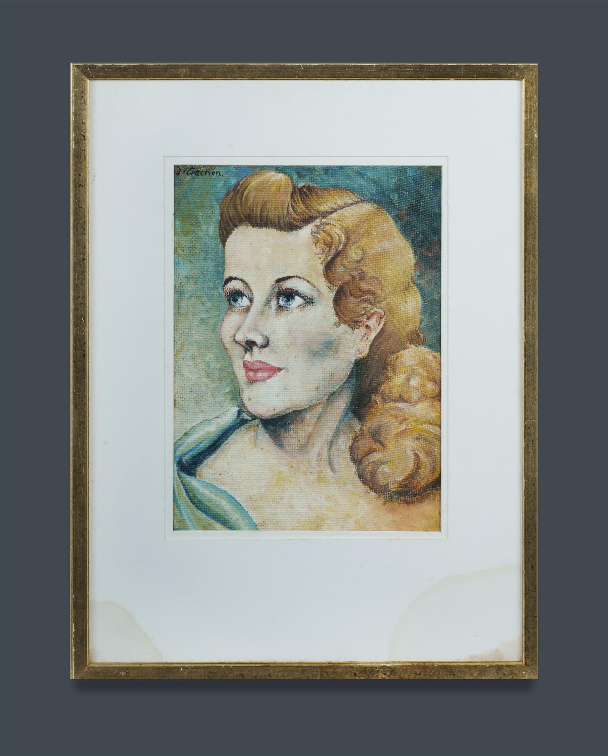 Bears Signature STRACHAN, David (1919-1970) Female Portrait Signed upper left. Oil on Board 37.5x27cmEstimate $200-400