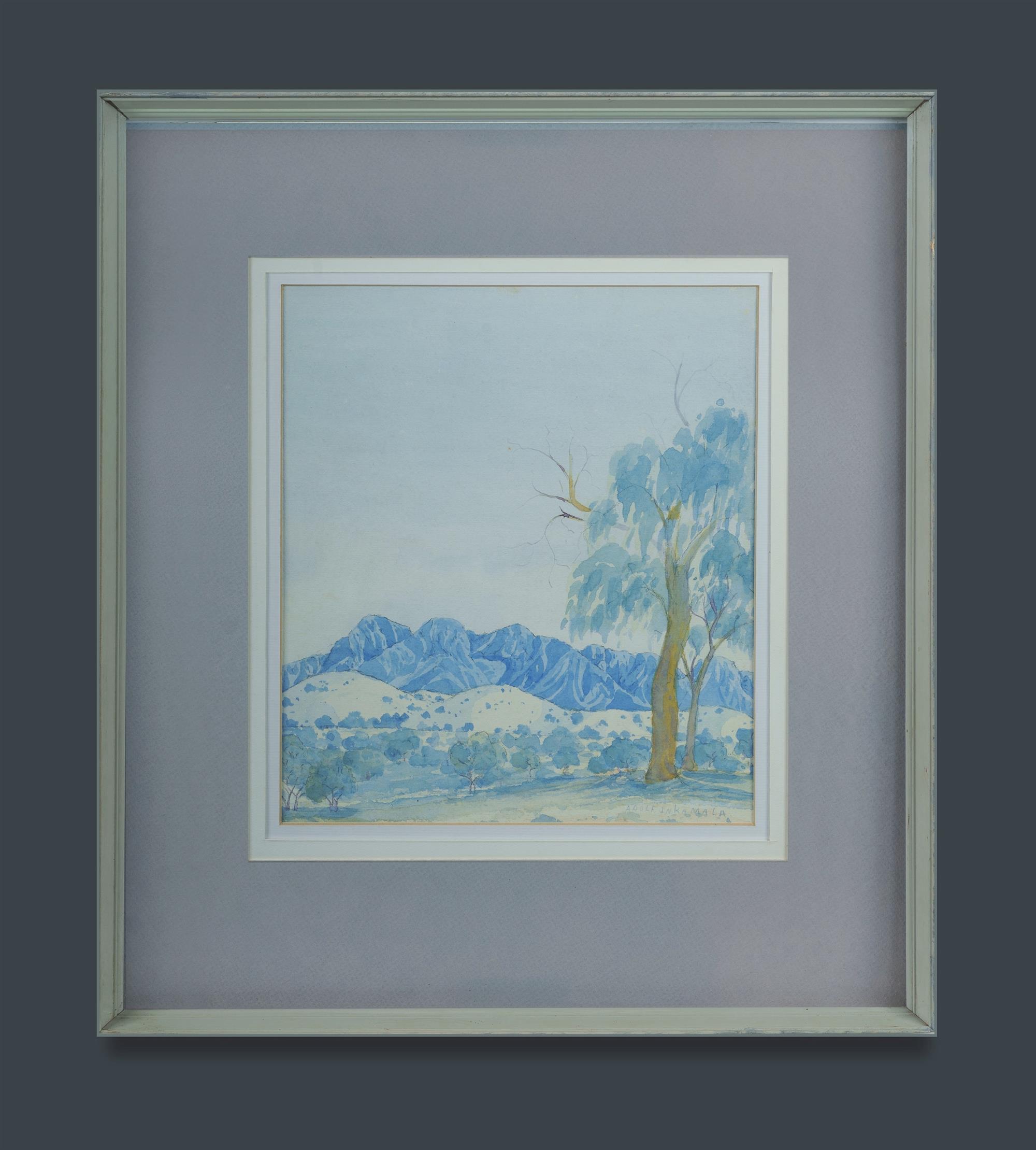 INKAMALA, Adolf (1914-1960) Central Australian Landscape with Mountain Range Signed lower right. W/Clr 29x25.5cmEstimate $180-350