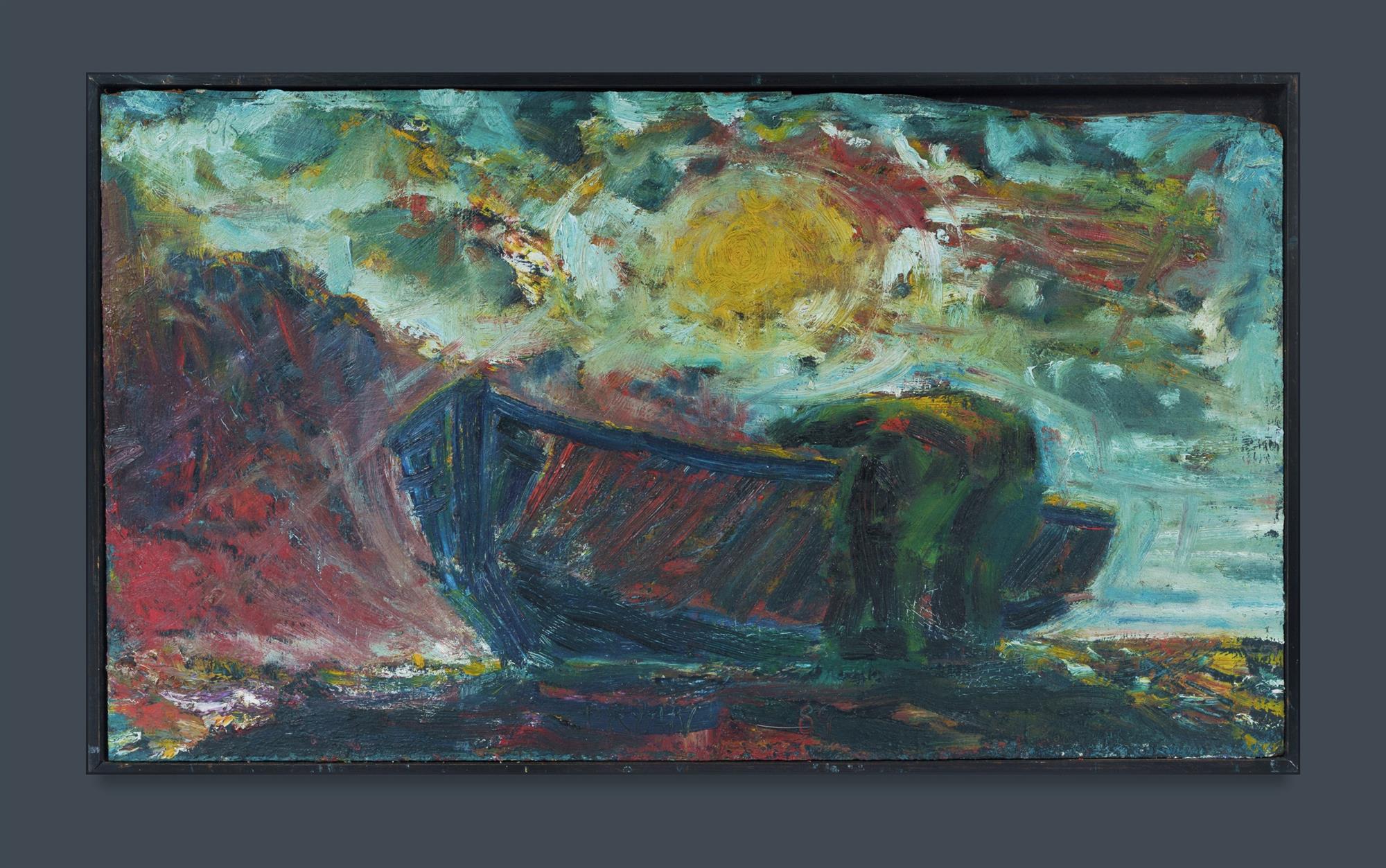 RYAN, Paul (b.1964) 'Fisherman V,' 1989. Signed lower centre. Oil on Board 25x45.5cm EXHIBITIONS: DC-Art, Sydney, 20th March - 17th April 1990 (label verso, #1079). Exhibition card included.Estimate $250-450