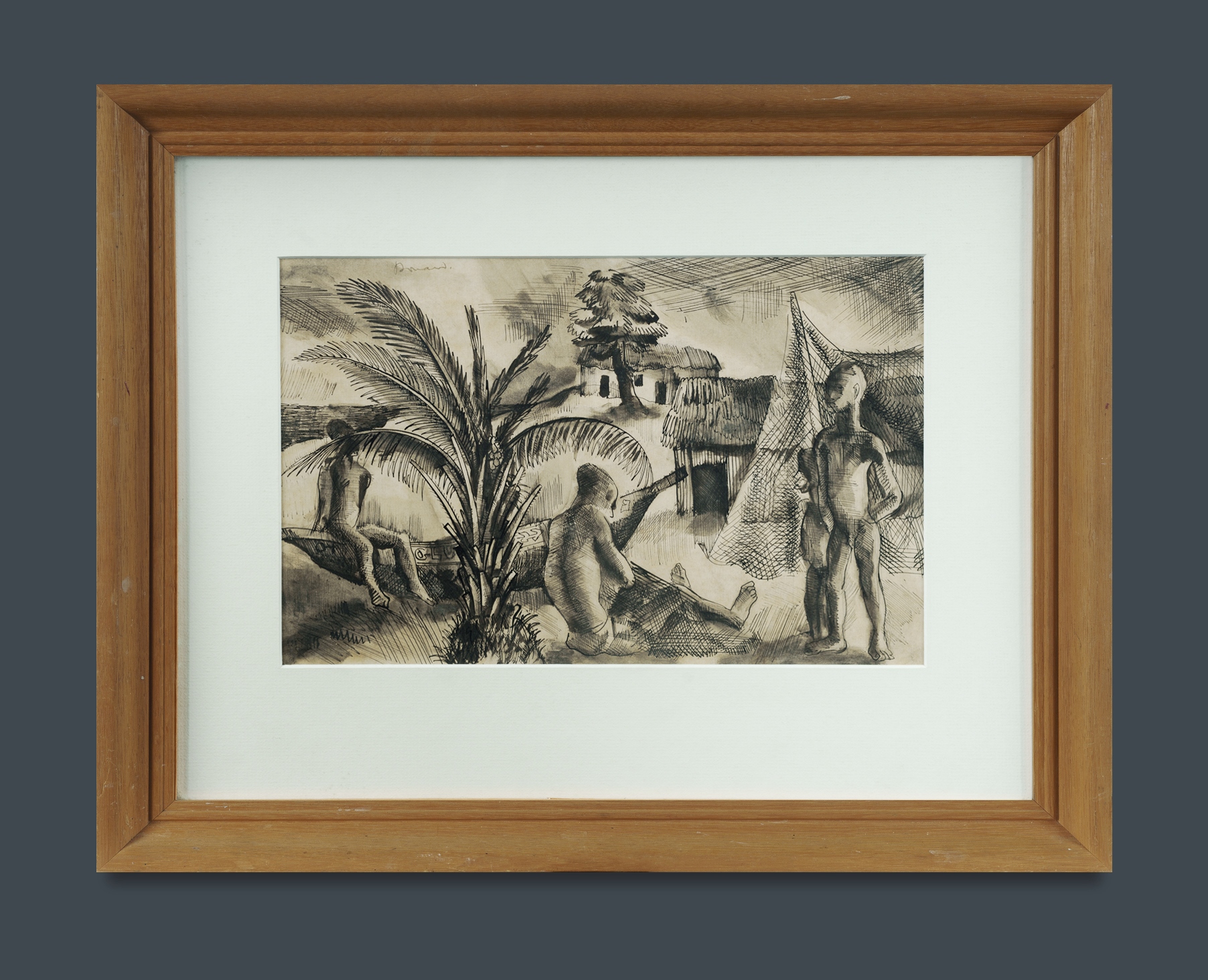 FRIEND, Donald (1915-1989) Fishing Village, Ceylon. Signed upper left. Ink & Wash 21x33.5cmEstimate $2,000-4,000