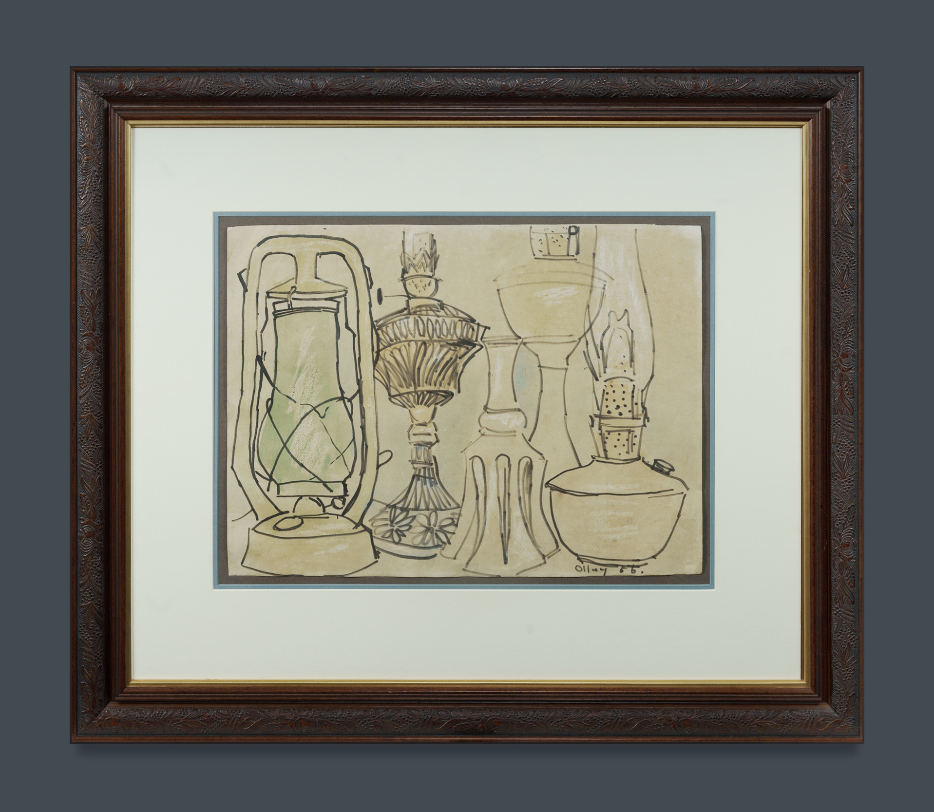 OLLEY, Margaret (1923-2011) Lanterns, 199(5?)6 Signed lower right. Felt Pen & Wash 39.5x52.5cmEstimate $2,000-4,000