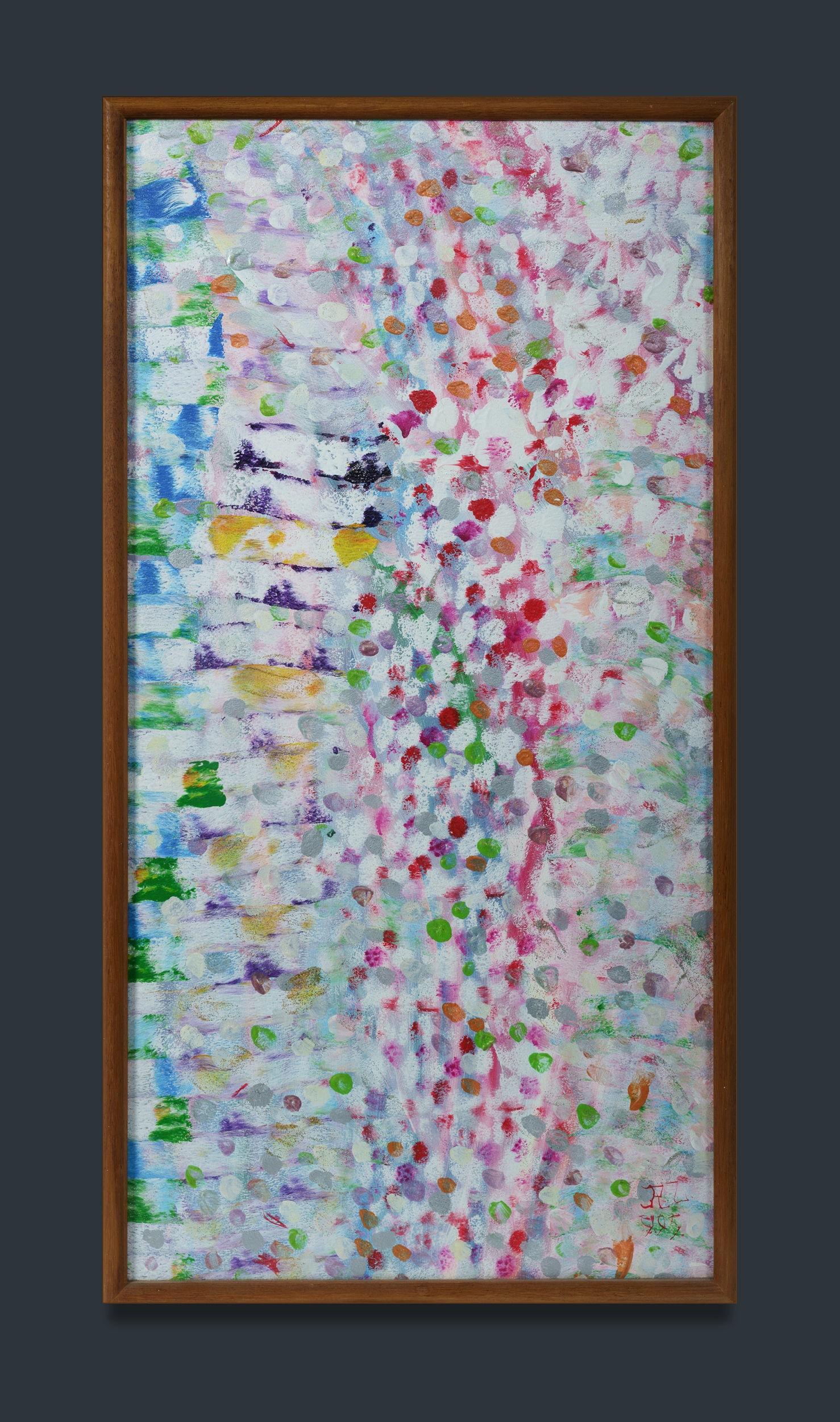 LARTER, Richard (1929-2014) 'Vernal,' 1995. Initialled lower right; old label verso. Acrylic, Gesso & Metallic Glitter Paint on Canvas 69x35cm PROVENANCE: Watters Gallery, Sydney; private collection, NSW.Estimate $800-1,500