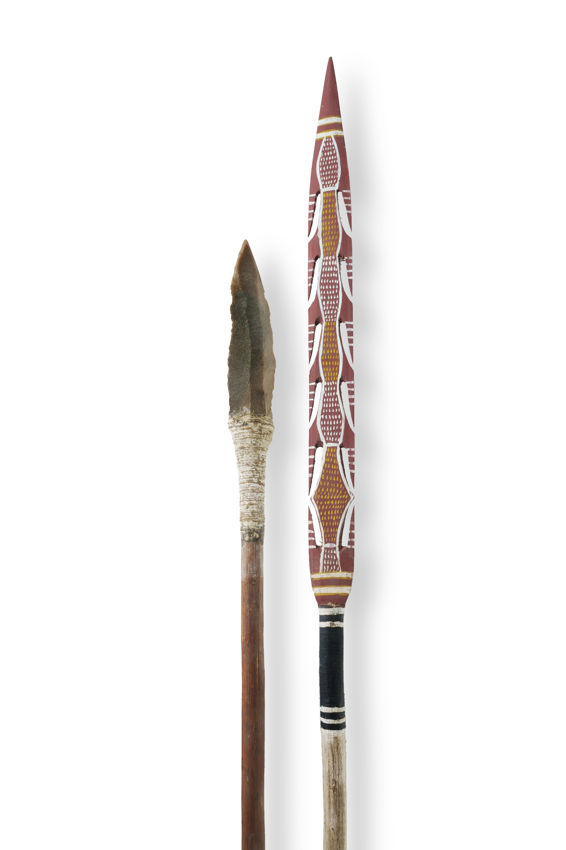 Two Spears Includes stone-tipped hunting spear (L234cm), and tiwi pukumani spear (L202cm) PROVENANCE: Collection Mr H & Mrs P Wallace, Sydney.Estimate $200-400