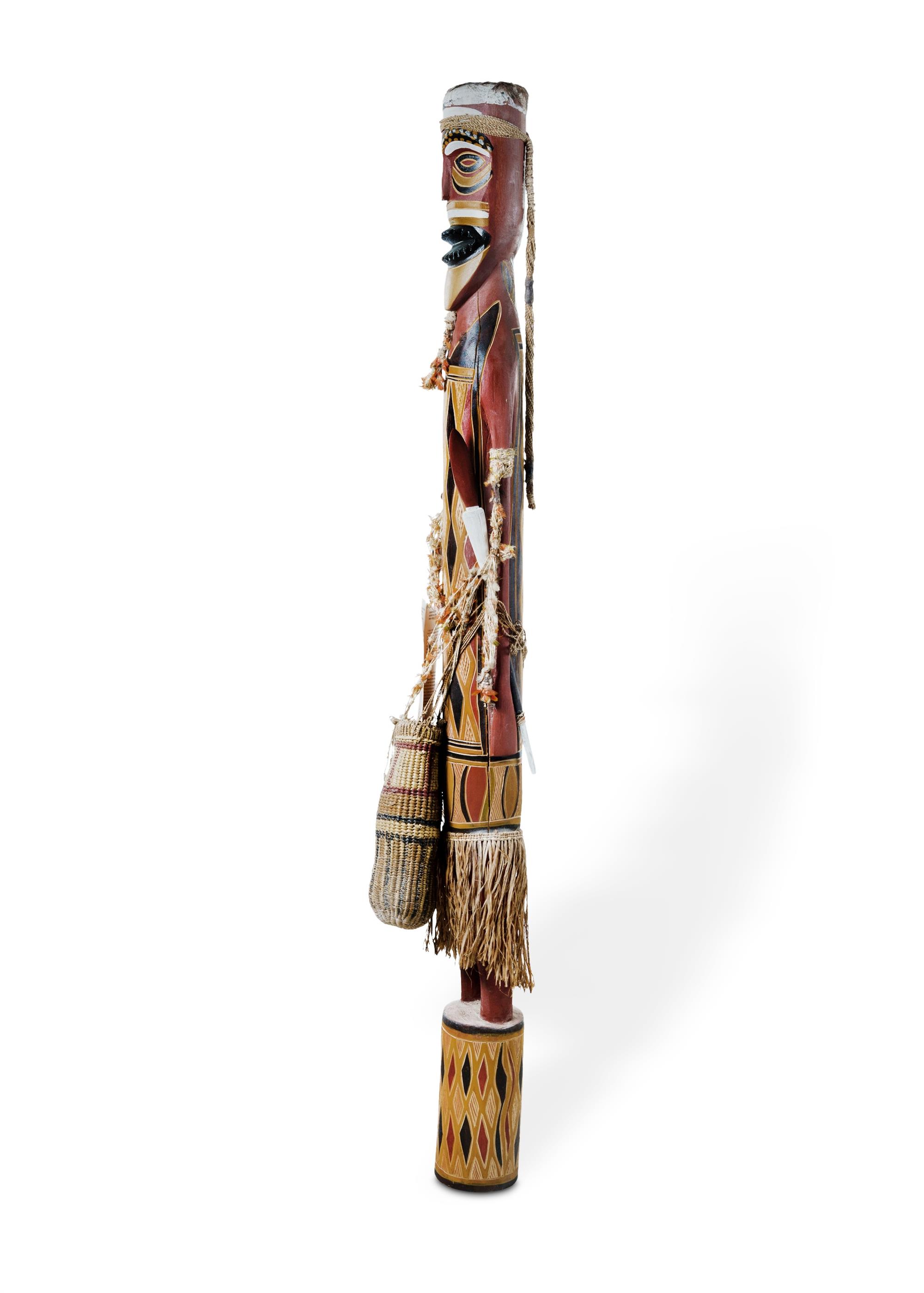 Yirrkala Carved Figure of a Hunter Ex Aboriginal Artist Centre, Adelaide, 1982. Natural Earth Pigments on Milkwood (H133cm) PROVENANCE: Collection Mr H & Mrs P Wallace, Sydney.Estimate $700-1,000