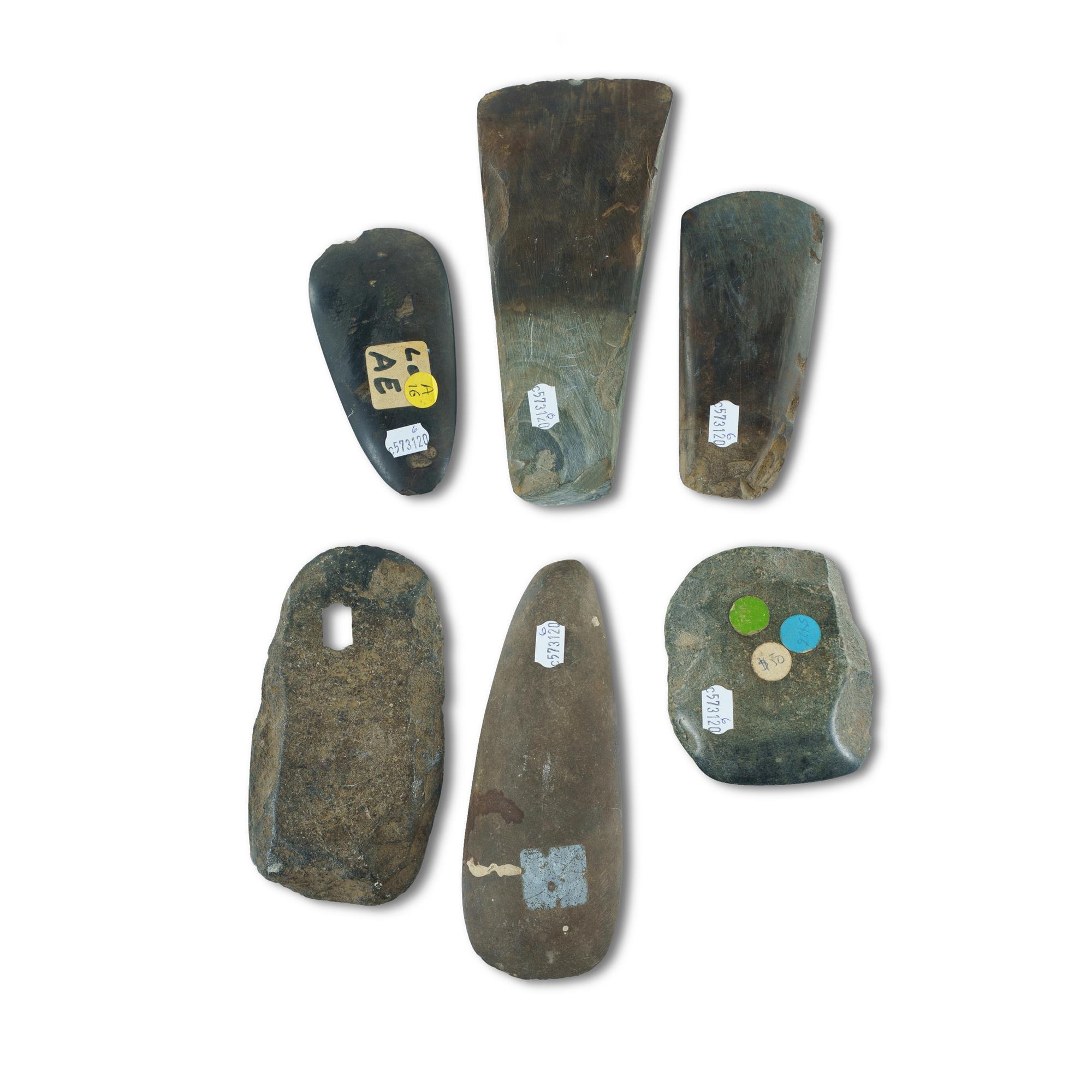 Six Various Aboriginal Stone Axe Heads L17cm (longest) PROVENANCE: Collection Mr H & Mrs P Wallace, Sydney.Estimate $80-150