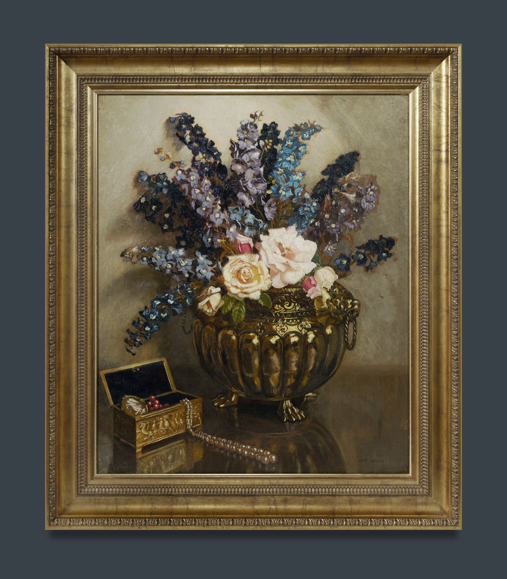SHERMAN, Albert John (1882-1971) 'Jewels' Signed lower right. Oil on Canvas on Board 66.5x54.5cmEstimate $2,000-4,000
