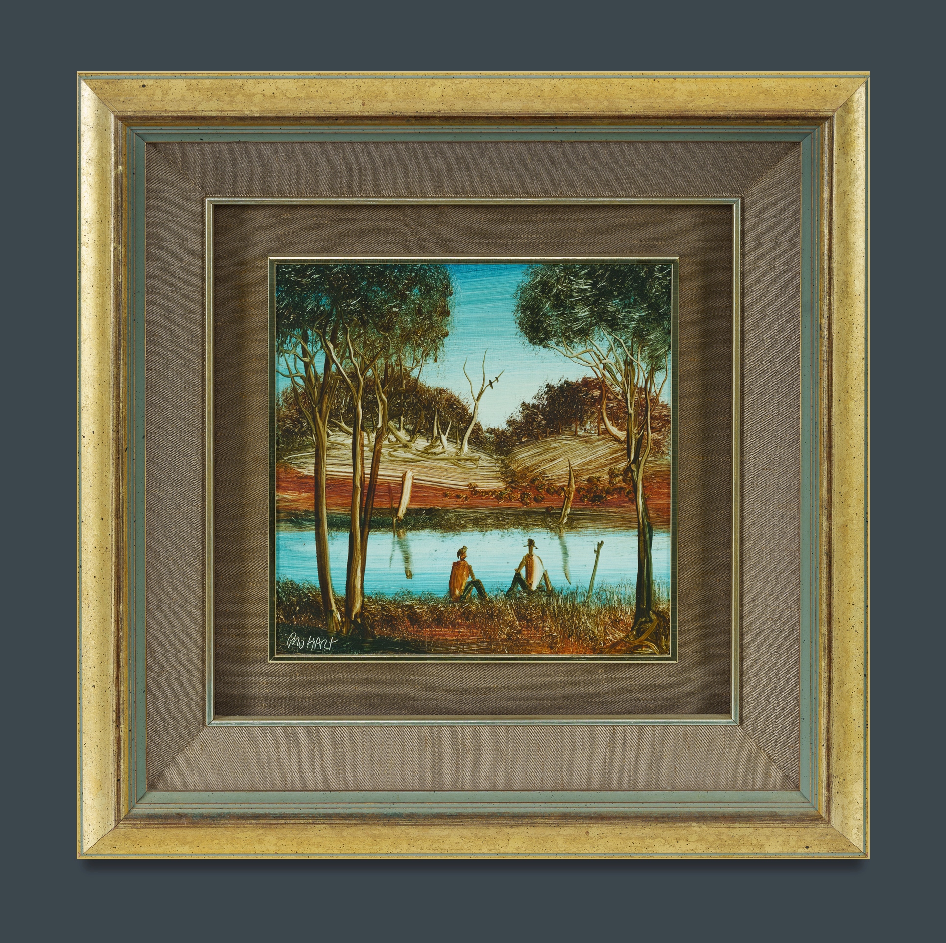 HART, Pro (1928-2006) 'Fishermen, Menindee [NSW]' Signed lower left. Oil on Board 19.5x19.5cmEstimate $1,500-2,500