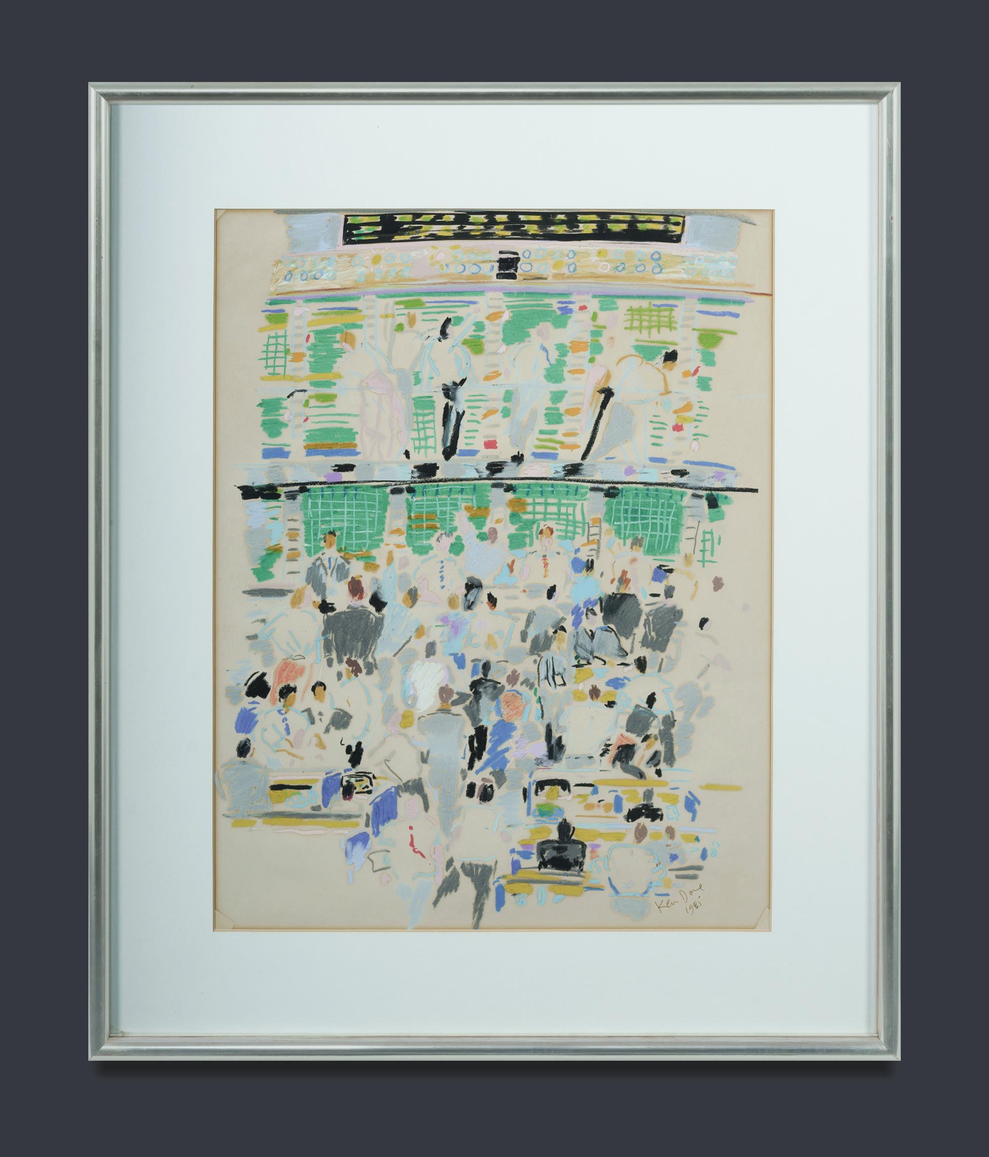 DONE, Ken (b.1940) 'Trading Floor,' 1985. Signed lower right. Coloured Crayon/Pastel 47x36.5cmEstimate $600-1,000