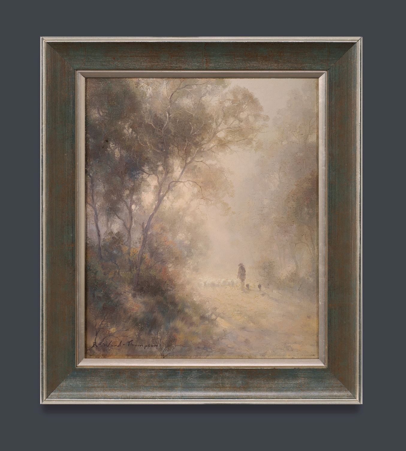 WARD-THOMPSON, Ramon (b.1941) Shepherding the Flock Signed lower left. Oil on Canvas on Board 30x25cmEstimate $120-200