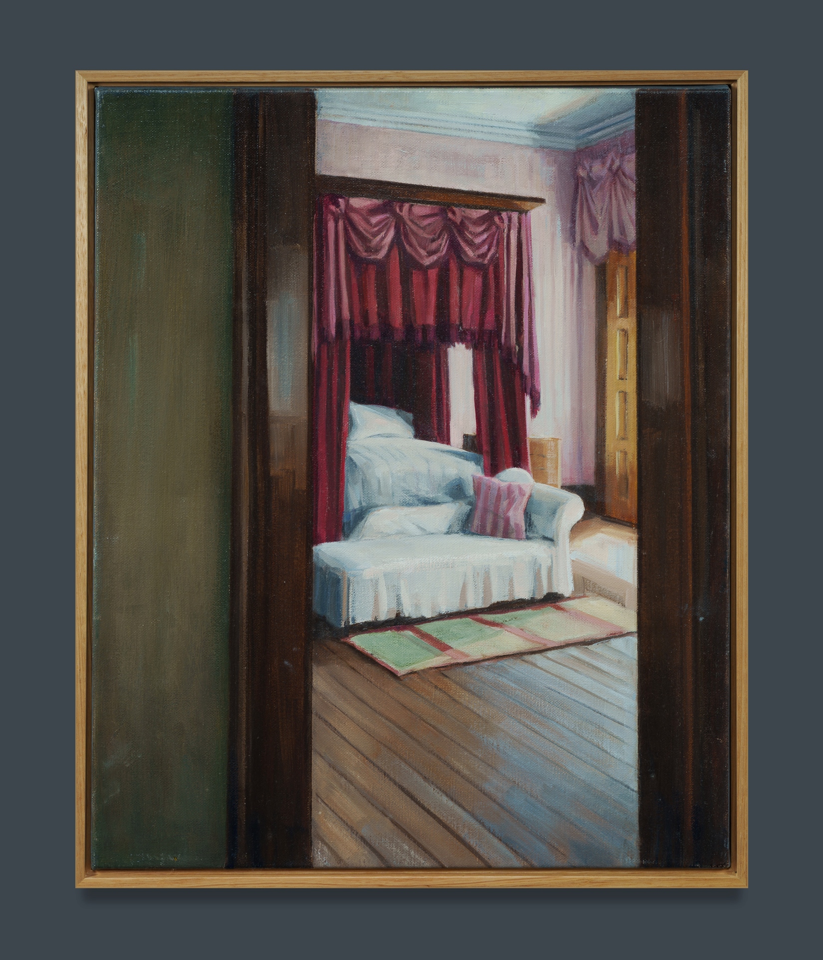 MANSFIELD, Marie (born 20th C.) 'Upstairs' Signed and titled verso. Ex AK Bellinger Gallery, Inverell, NSW (label verso) Oil on Linen 56x46cmEstimate $2,000-4,000
