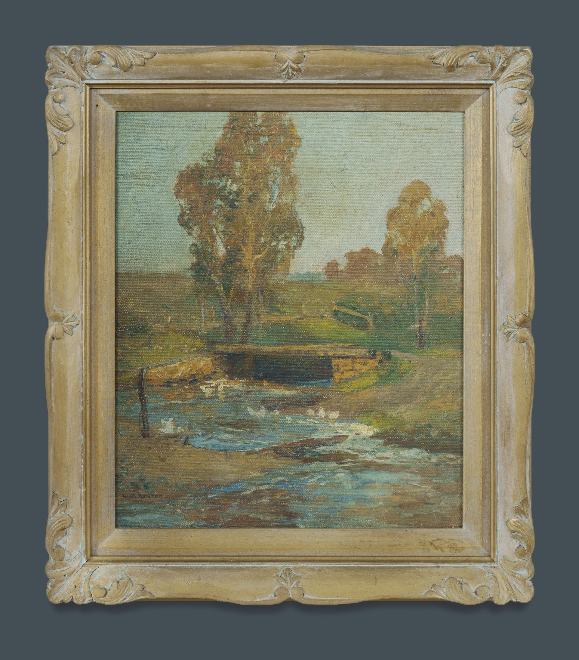 ASHTON, Will (1881-1963) Bridge Over Stream Signed lower left. Oil on Canvas on Board 34x28.5cmEstimate $1,000-2,000