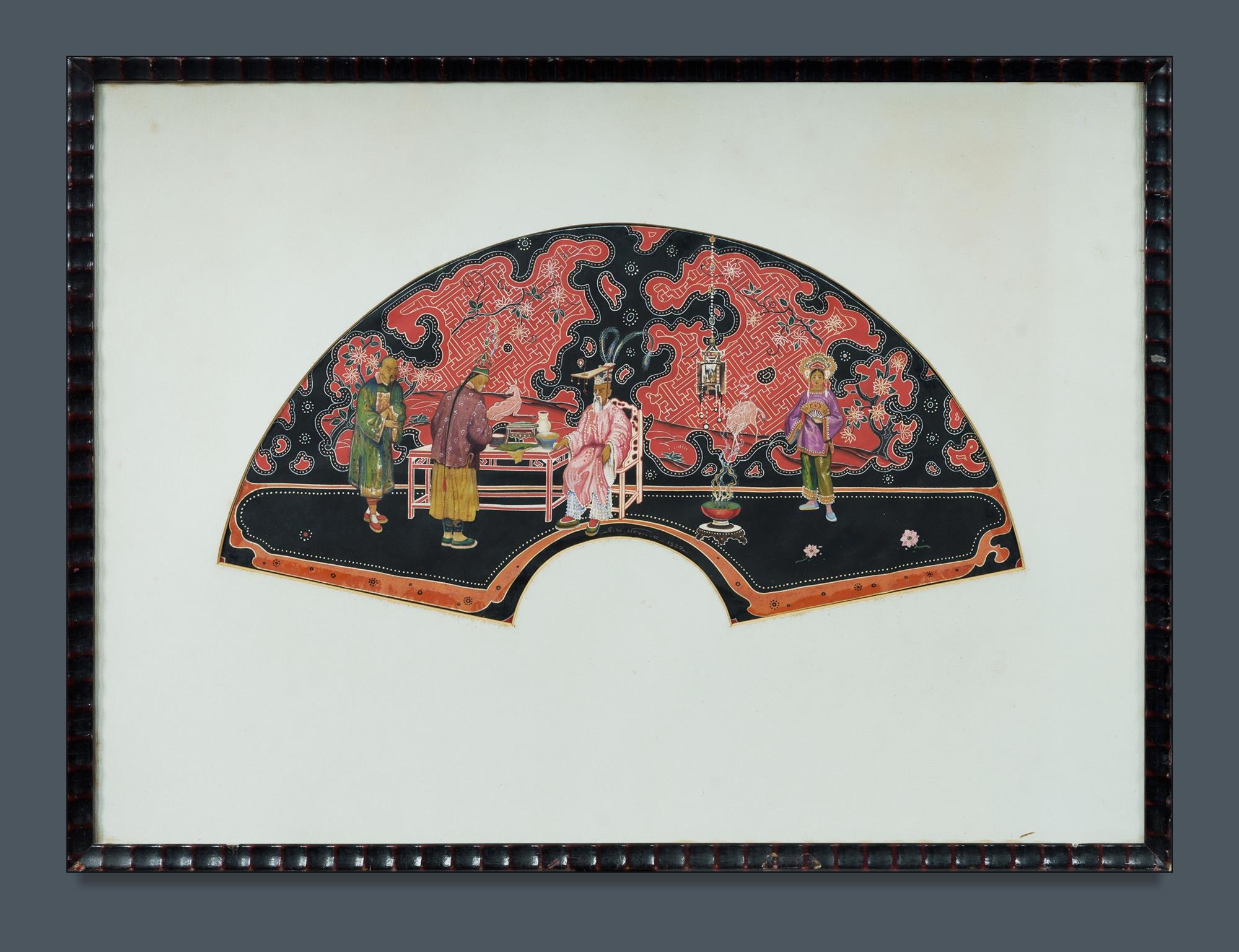 NEVILLE, George (1889-1954) Chinese Ceremony, 1927. Signed lower centre. W/Clr & Gouache on Silk 25x50cm (fan-shaped)Estimate $800-1,500