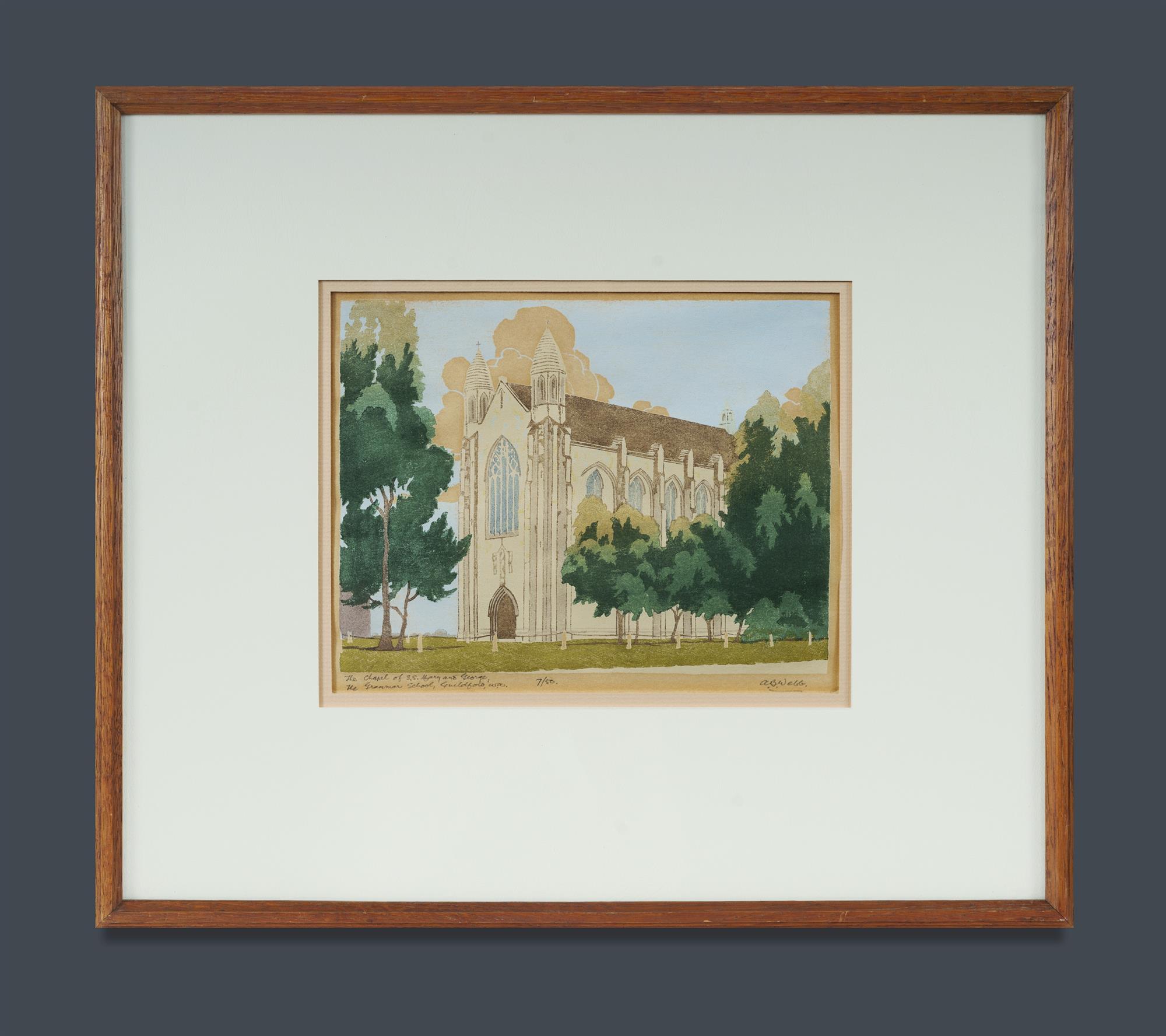 WEBB, Archibald Bertram (British/Australian 1887-1944) 'The Chapel of S.S. Mary and George, the Grammar School, Guildford, WA.' Signed lower right. Colour Woodcut 7/50 15.5x20cm (image)Estimate $1,800-3,500