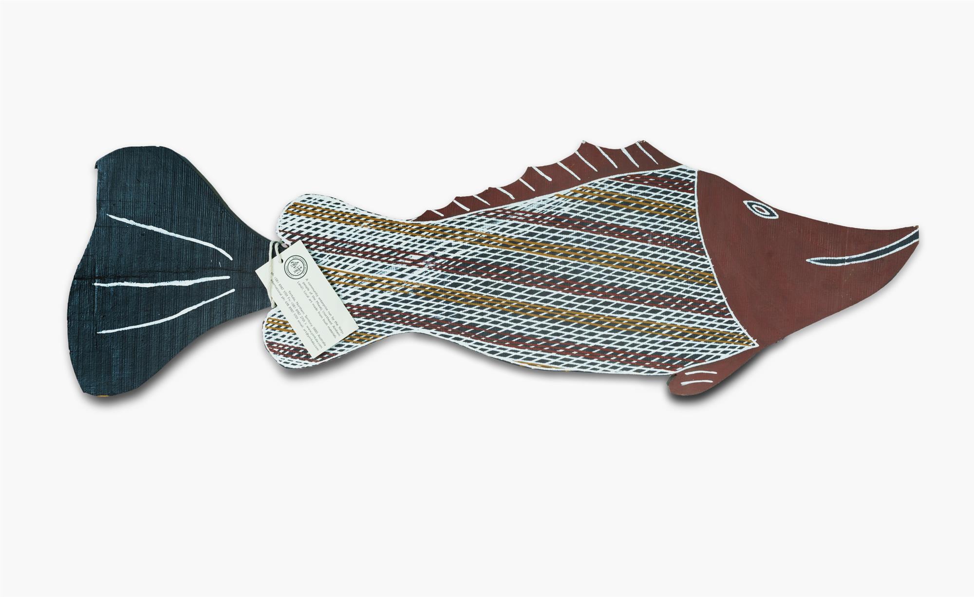 BINYURAL (Aboriginal School, Yirrkala) 'Baliny (Barramundi)' Earth Pigments on Wood L84cm PROVENANCE: Buku-Larrngay Mulka, Yirrkala NT (tag attached); Collection Rev. Dr Arthur Bridge AM OAM.Estimate $100-200