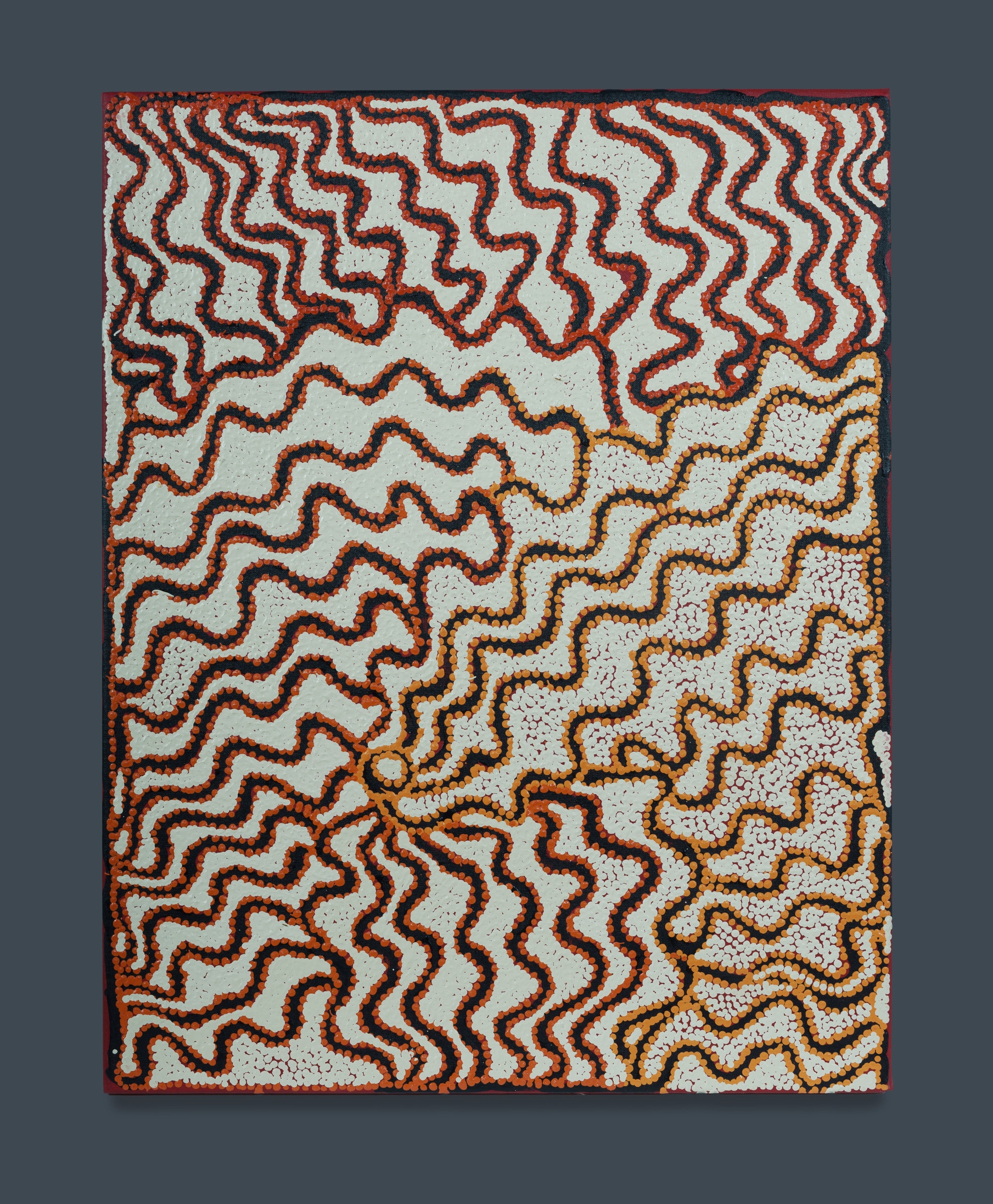 NAMPIJINPA, Tjawina Porter (Aboriginal b.1950) Untitled, 2013. Acrylic on Linen 71x56cm PROVENANCE: (Likely) Yanda Aboriginal Art, Alice Springs NT cat #TPN201330; Collection Rev. Dr Arthur Bridge AM OAM.Estimate $500-800