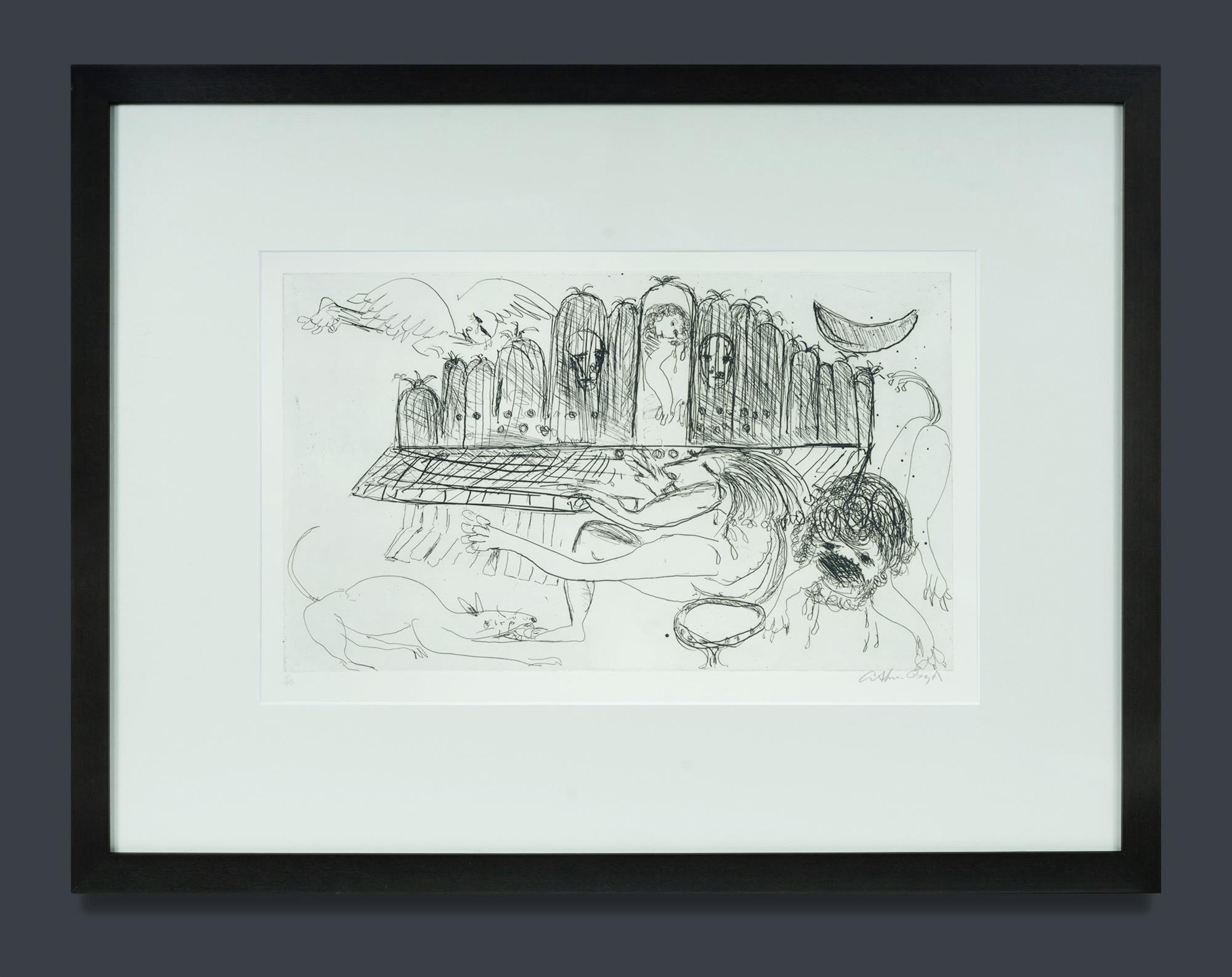 BOYD, Arthur Merric Bloomfield (1920-1999) Untitled (Man Playing the Organ), 1994. Etching 7/75 30x50cm (plate) PROVENANCE: Collection Rev. Dr Arthur Bridge AM OAM.Estimate $400-600