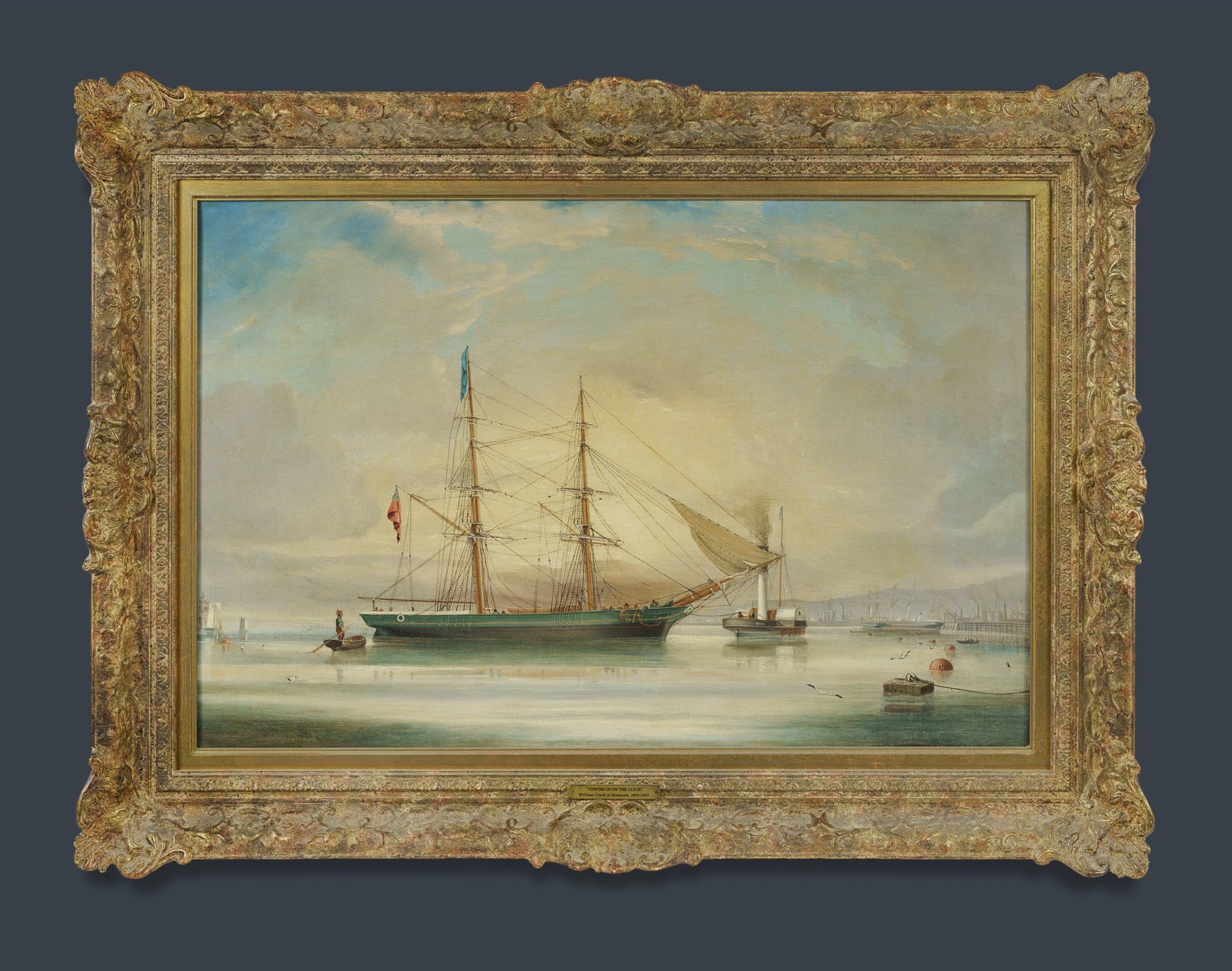 CLARK OF GREENOCK, William (British 1803-1883) 'Towing in on the Clyde' Faint signature lower left? Oil on Canvas (relined) 49x74.5cm PROVENANCE: Cambridge Fine Art, London (purchased Feb. 1989); Collection Mr H & Mrs P Wallace, Sydney.Estimate $2,000-4,000