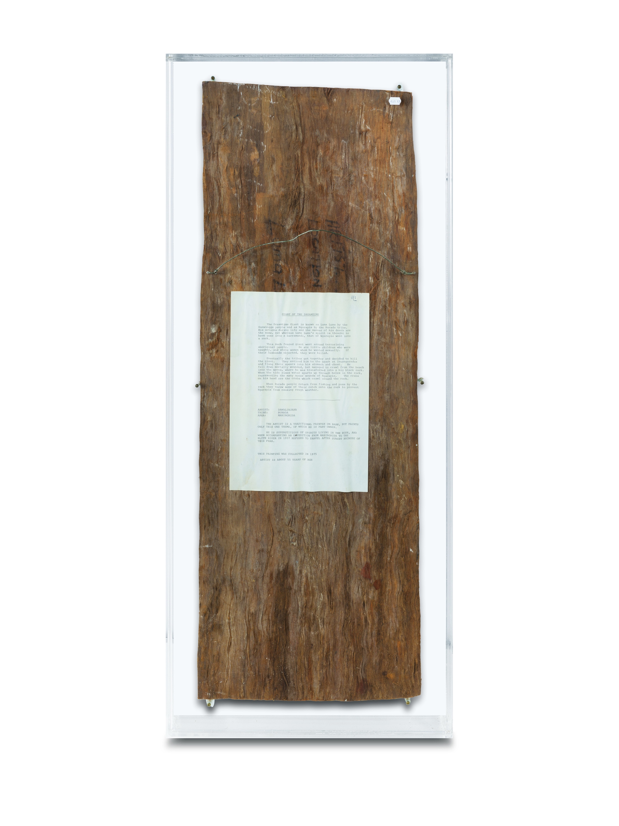 DAWALINJARA, Jumbo (1939-?) 'Giant of the Dreamtime,' c.1975. Dorothy Bennett collection (possibly no. 107) Natural Earth Pigments on Eucalyptus Bark 92x33cm