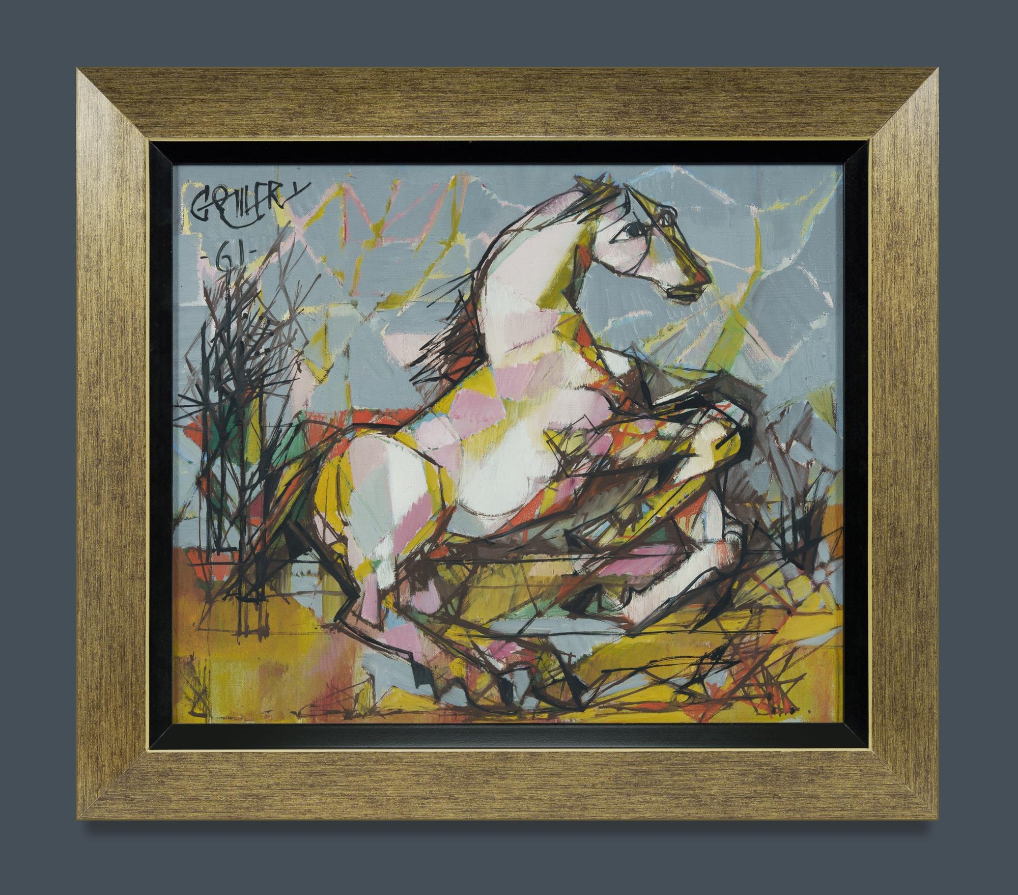 GOMERY, Emeric (French 1902-1969) Horse in Motion, 1961. Signed upper left. Inscribed verso: 'E Gomery/St Germain-en-Laye/Rue Jeanne d'Arc' Oil on Canvas 44.5x53.5cm PROVENANCE: Leonard Joel, Sydney, November 21st 2010 (lot 45)Estimate $100-200
