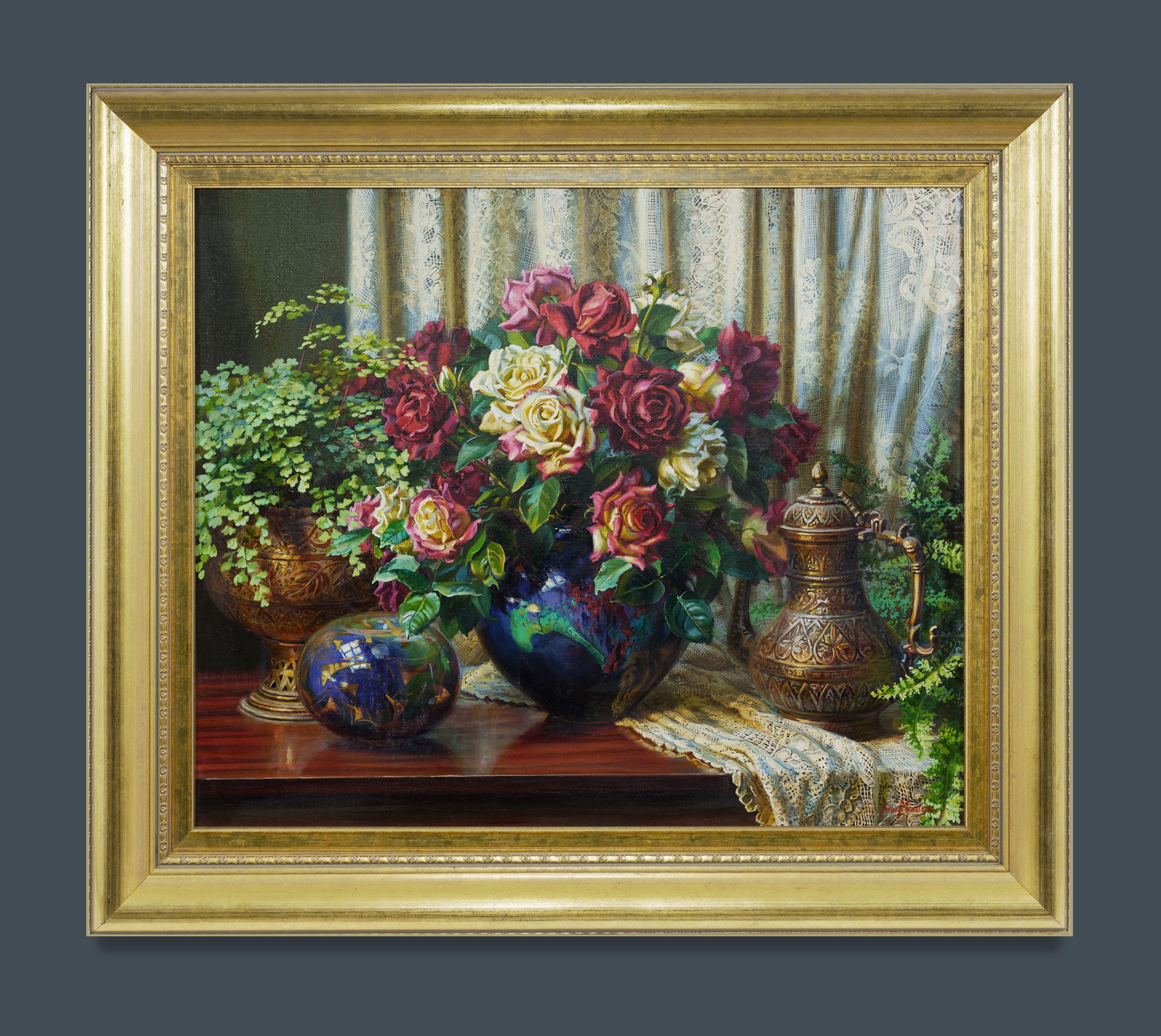 MORTON, Ann (b.1958) 'Double Delight,' c.2016. Signed lower right. Oil on Canvas 75x90cm PROVENANCE: Milk Factory Gallery, Bowral NSW 'Paint & Clay,' November - December 2016; private collection, Sydney.Estimate $2,000-4,000