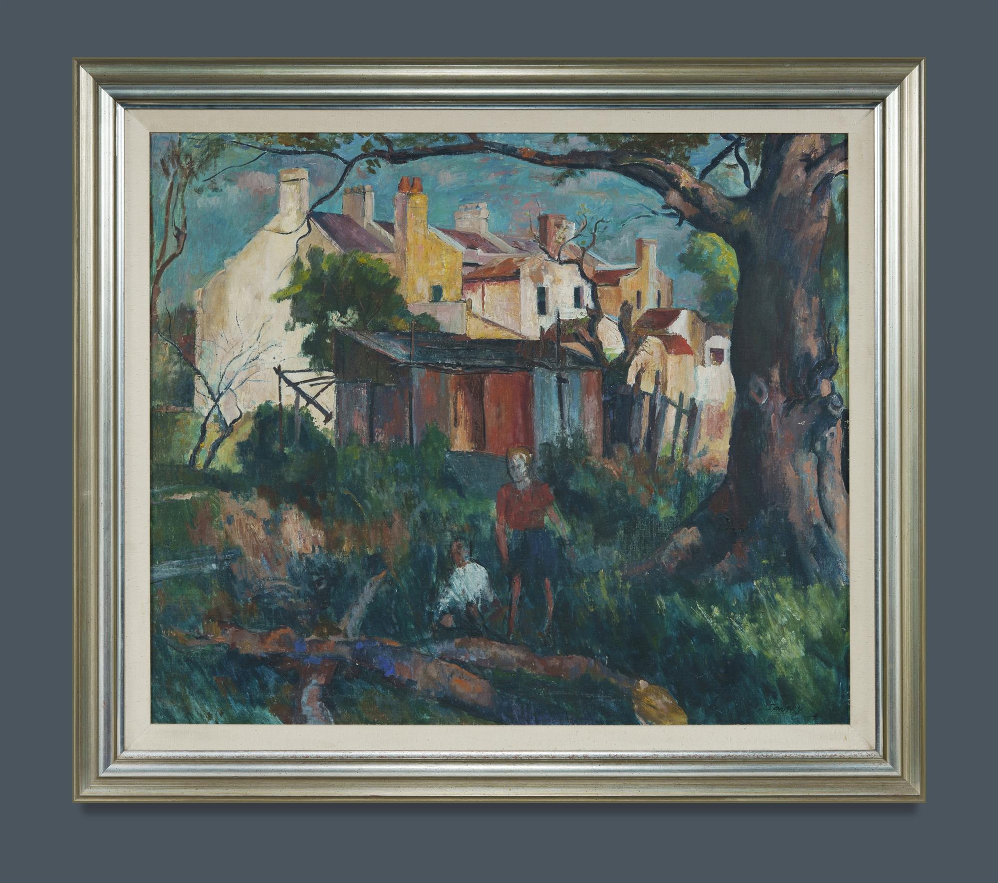 SANTRY, John (1910-1990) Two Boys, Paddington, 1958. Signed and dated lower right. Oil on Board 85x100cmEstimate $2,000-4,000