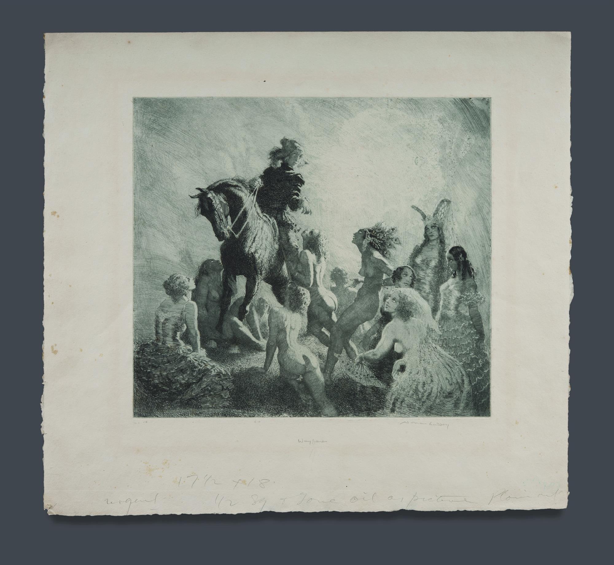 LINDSAY, Norman (1879-1969) 'The Wayfarer,' 1938. Signed lower right. Etching & Engraving 12/50 25x28cmEstimate $1,800-2,500
