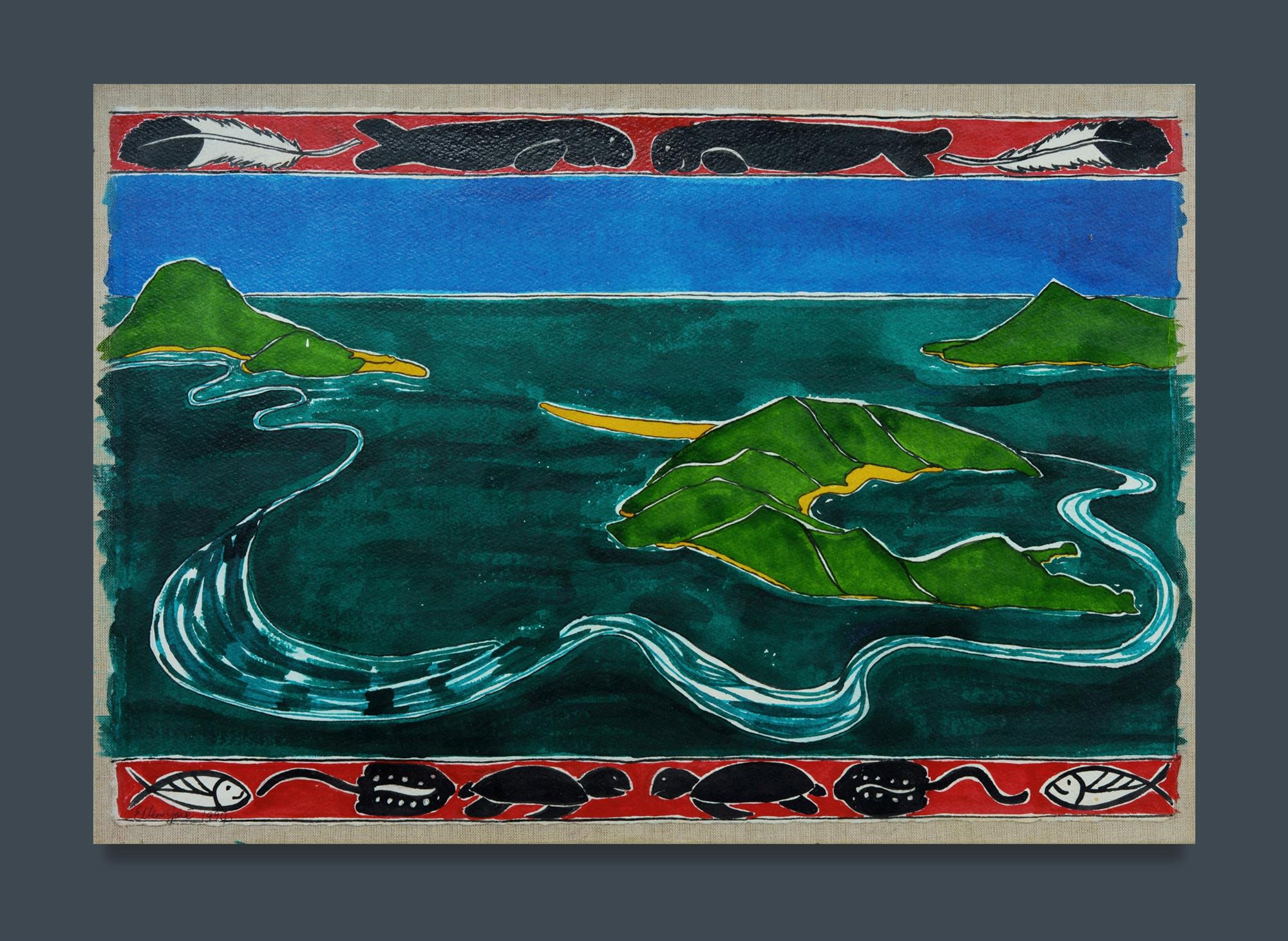 JOSE, Ellen (Aboriginal b.1951) 'My Grandfathers Home,' 1994. Signed lower left. Ex William Mora Galleries, Melbourne (stamp verso) Acrylic on Paper on Linen 41x59.5cmEstimate $150-250