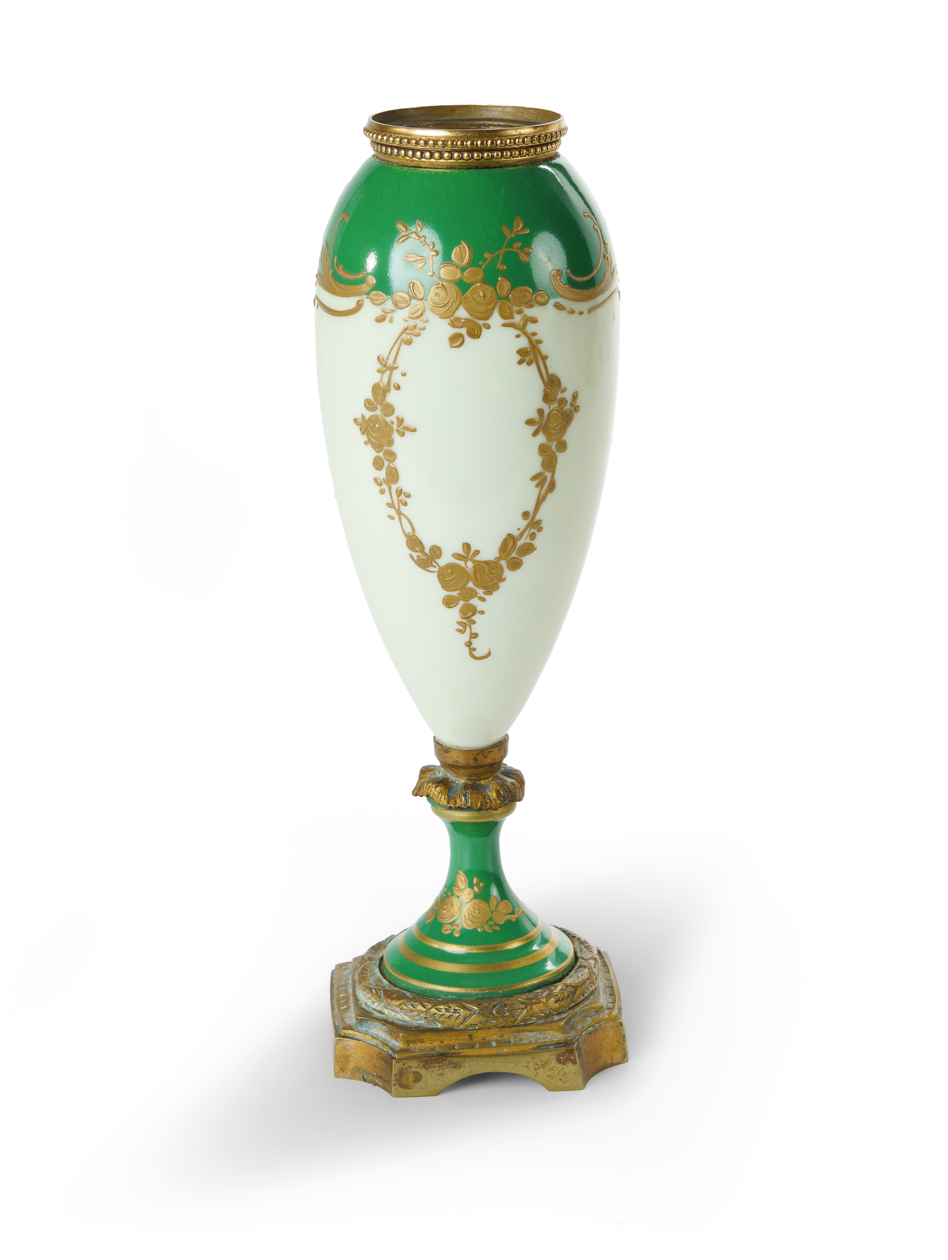 Late 19th C Sevres Porcelain and Ormolu Mounted Vase Hand-painted with woman holding a lyre. Signed 'Delys' (H23cm)Estimate $150-250