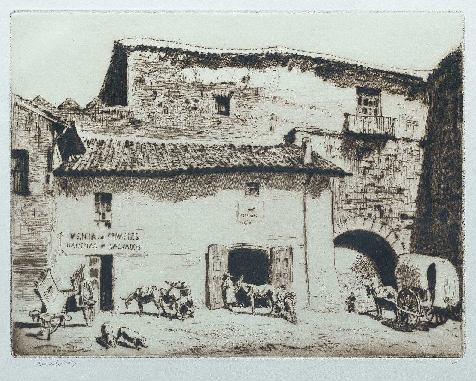 LINDSAY, Lionel (1874-1961) (2) 'Old Basque Houses, San Sebastian, Spain,' 1927, 22.5x27.5cm (plate); and 'A Smithy, Avila, Spain,' 1926, 20x26.5cm (plate) Both signed lower left. Etching (2) edition of 75Estimate $300-600