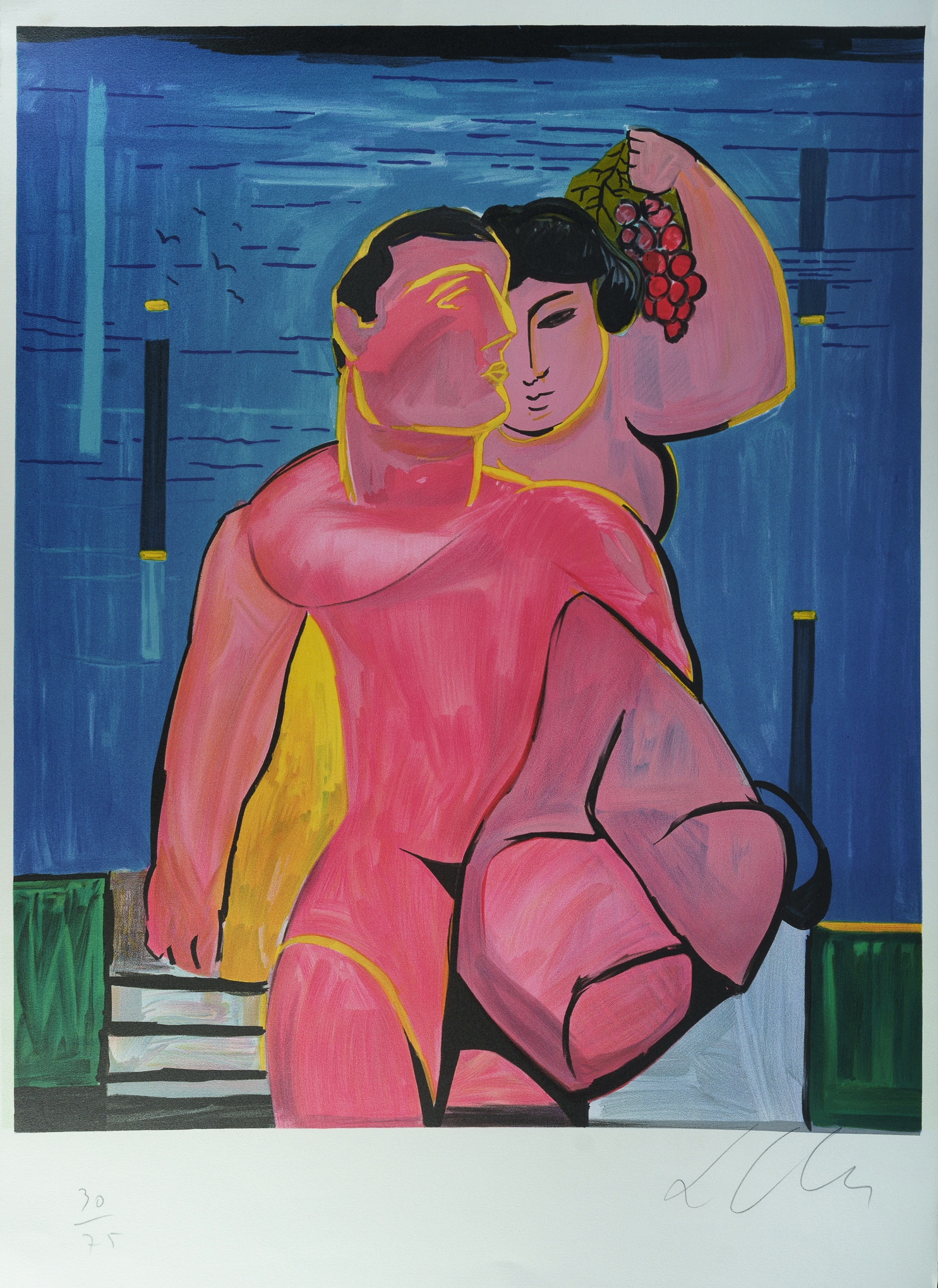 CHIA, Sandro (Italian b.1946) (2) Couple with Grapes, c.1989 (30/75); and Figure with Tree, c.1990 (62/75) Both signed lower right. Unframed. Lithograph in Colours (2) 100x69cm (sheet)Estimate $300-500