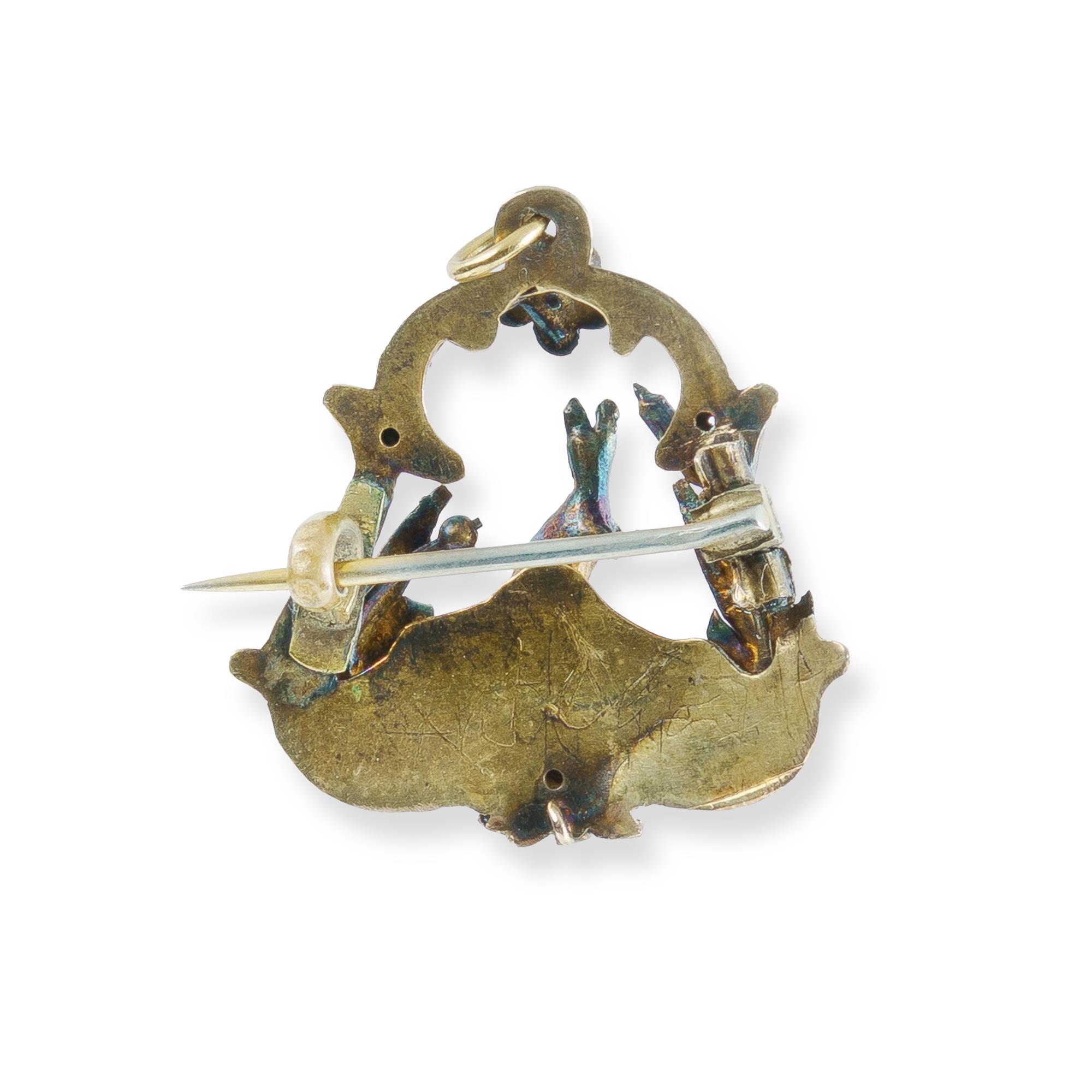 Australian Colonial Brooch/Pendant Early Australian combination brooch/pendant with kangaroo and native flora motif. Acid tests approx. 15ct. Measures (2.6x2.5cm) and weighs approx. (3g)Estimate $180-325