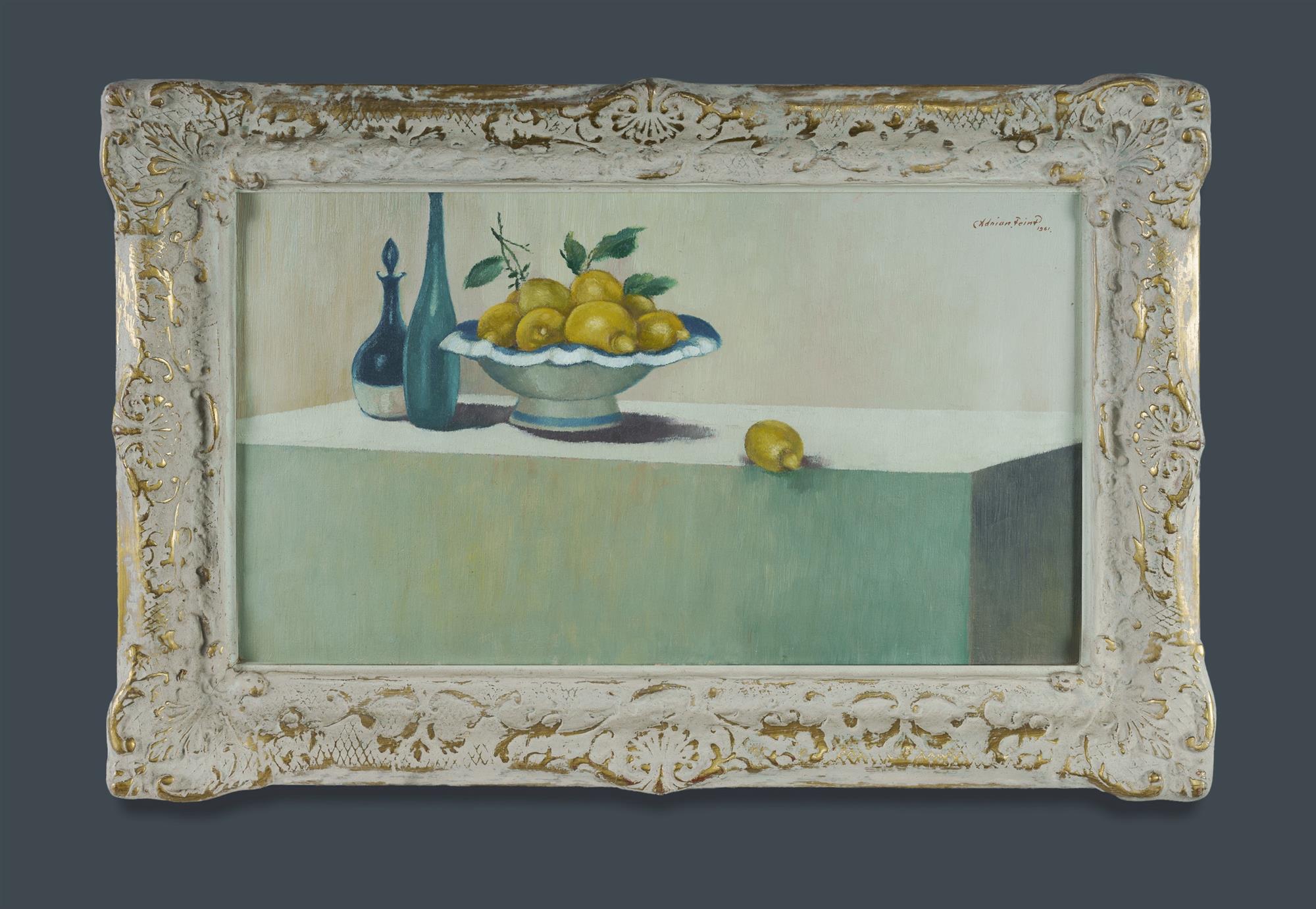 FEINT, Adrian (1894-1971) Still Life with Lemons and Bottles, 1961. Signed and dated upper right. Oil on Canvas 25.5x45.5cmEstimate $2,000-4,000